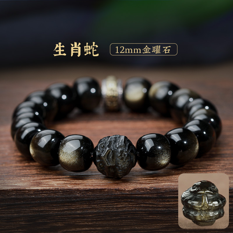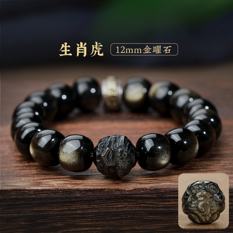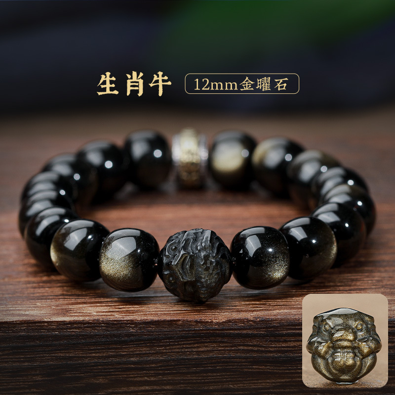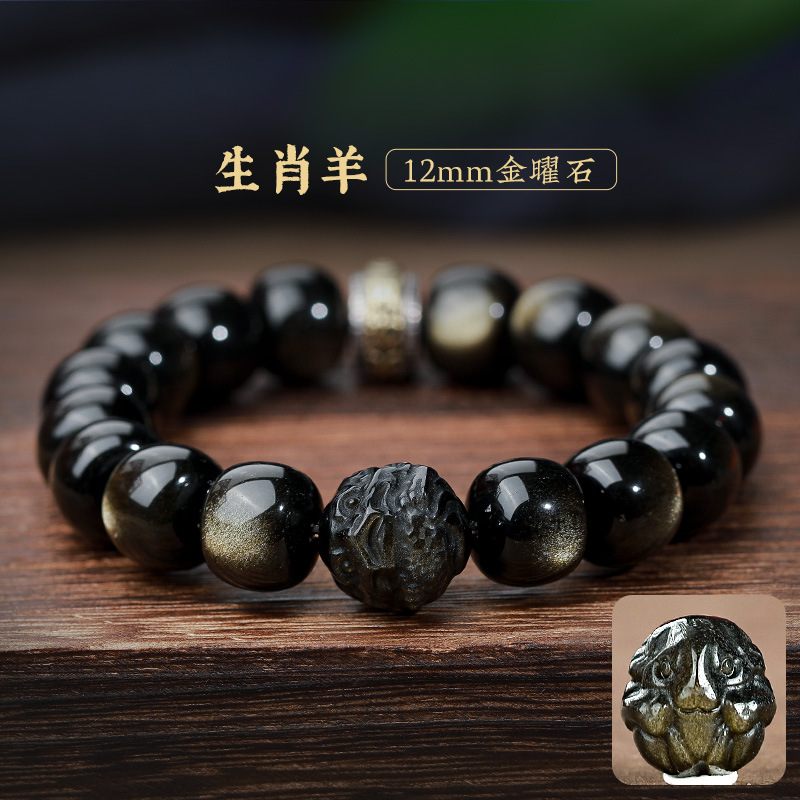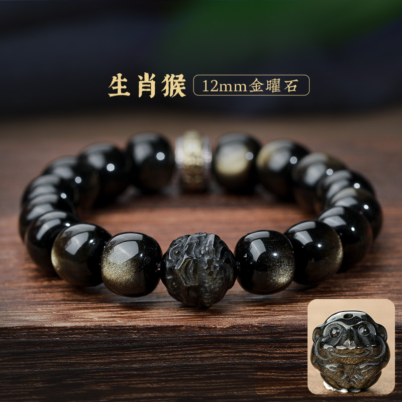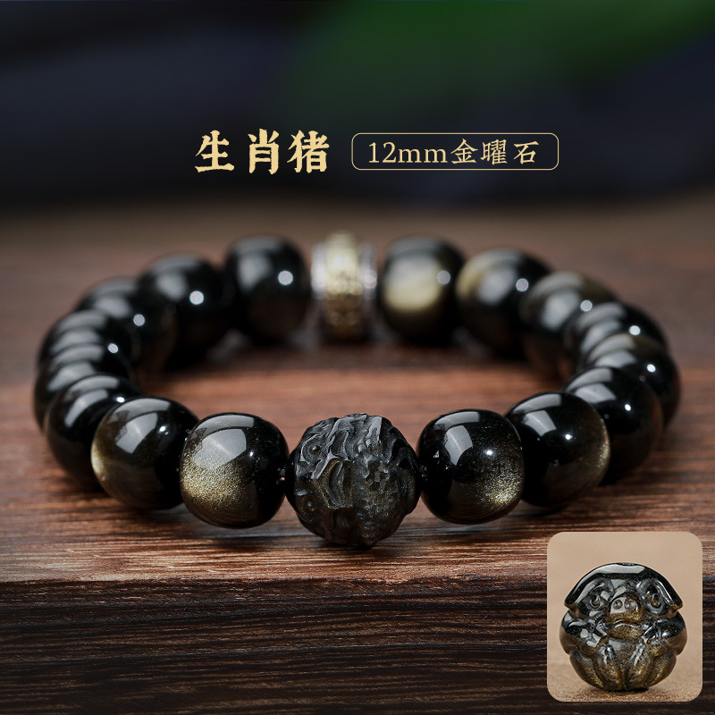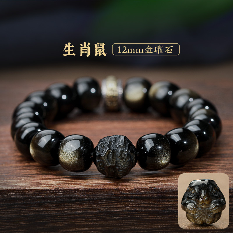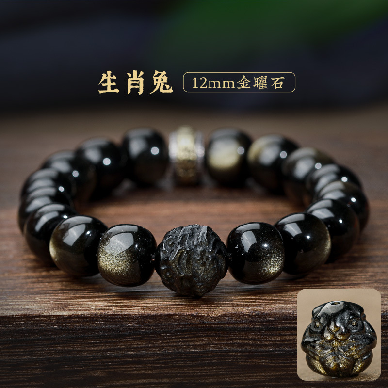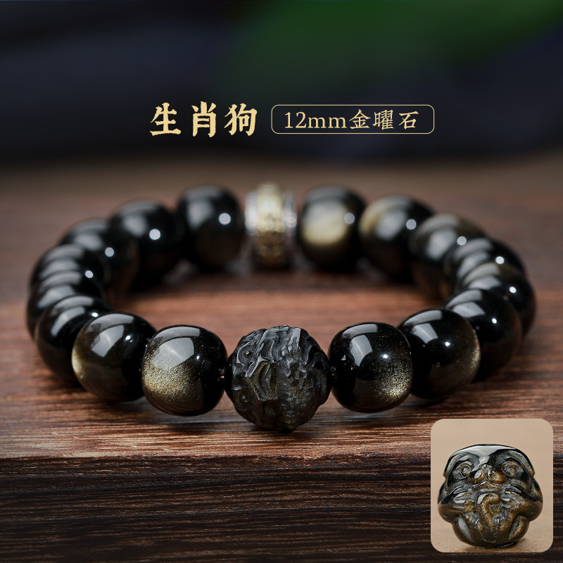 자연 고양이 눈 금 흑요석 팔찌 12 조디악 행운의 구슬 부처님 구슬 흑요석 팔찌 연인을위한 새해 선물