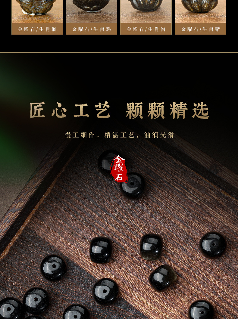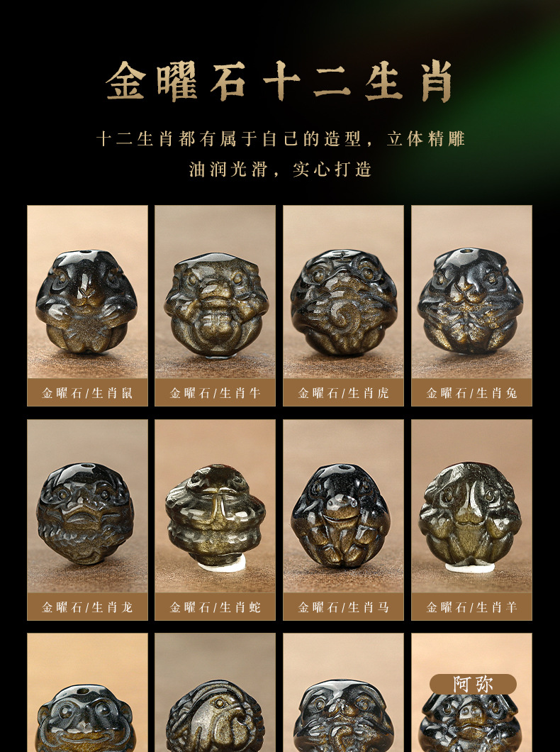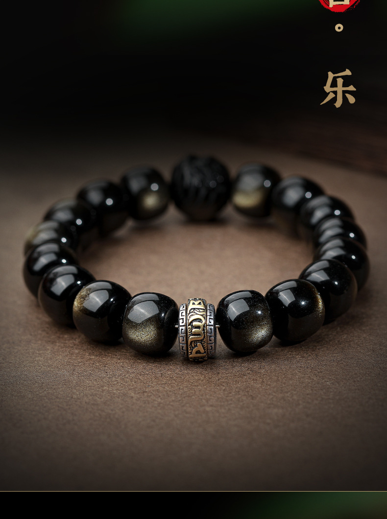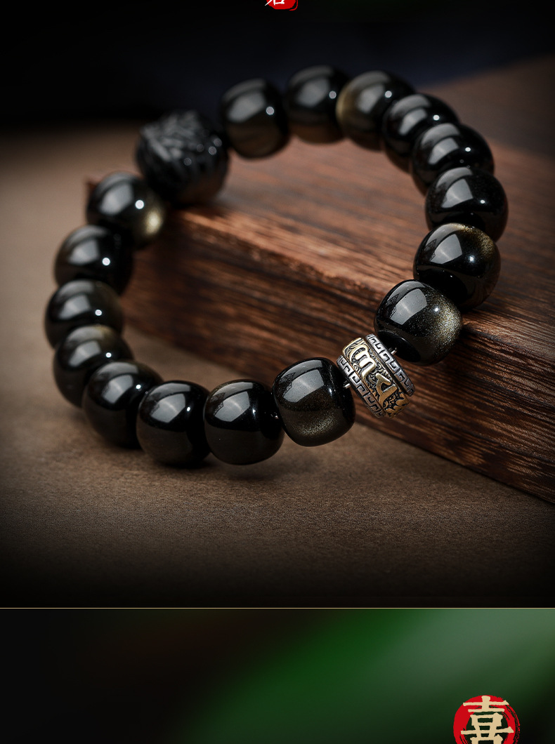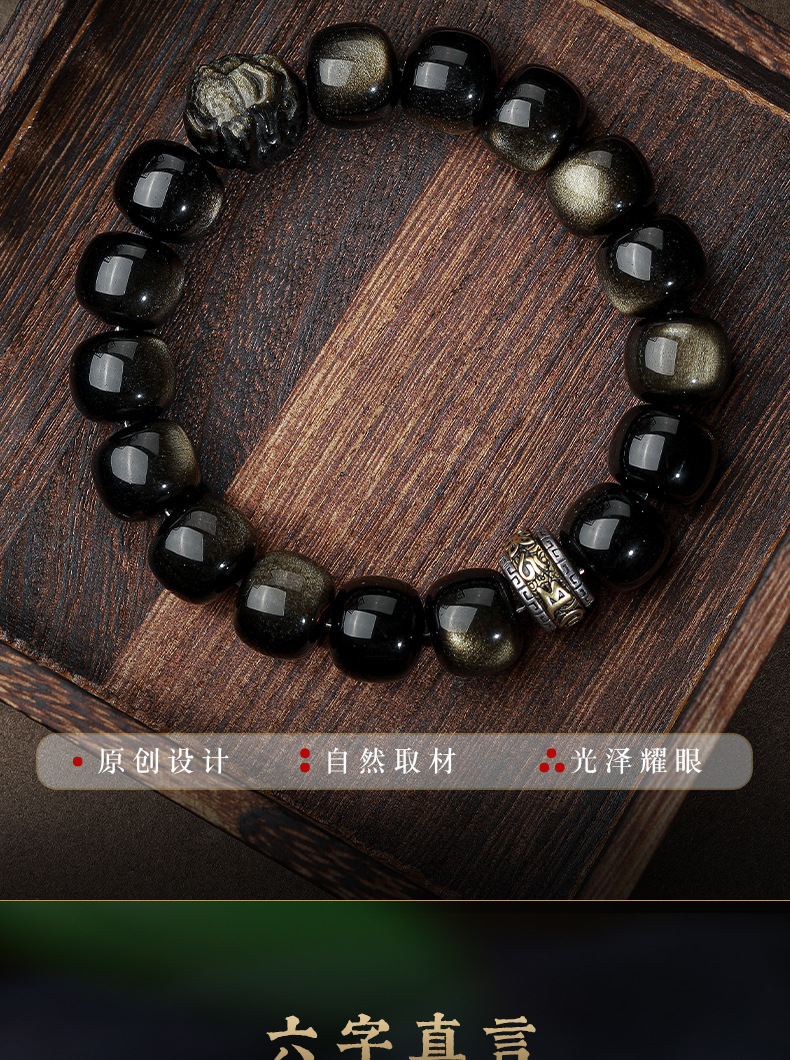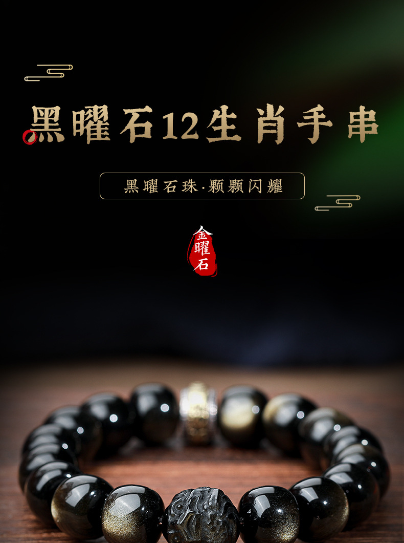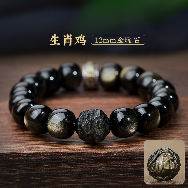 자연 고양이 눈 금 흑요석 팔찌 12 조디악 행운의 구슬 부처님 구슬 흑요석 팔찌 연인을위한 새해 선물