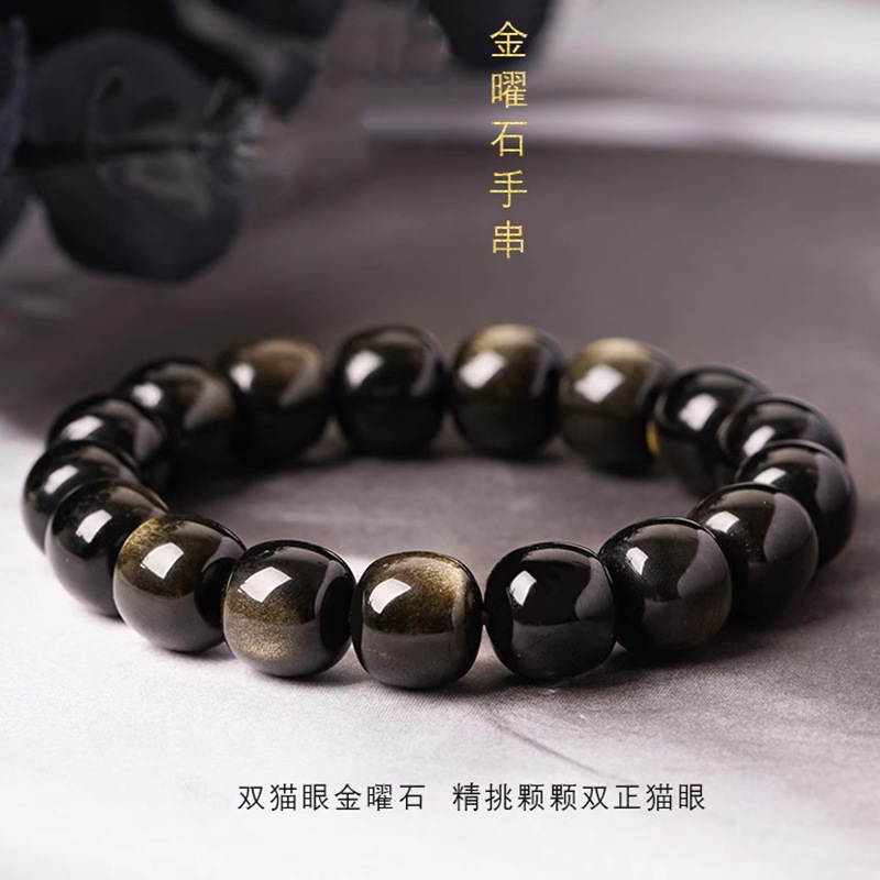 자연 고양이 눈 금 흑요석 팔찌 12 조디악 행운의 구슬 부처님 구슬 흑요석 팔찌 연인을위한 새해 선물스토어 가기