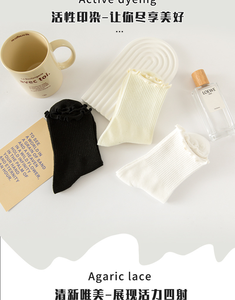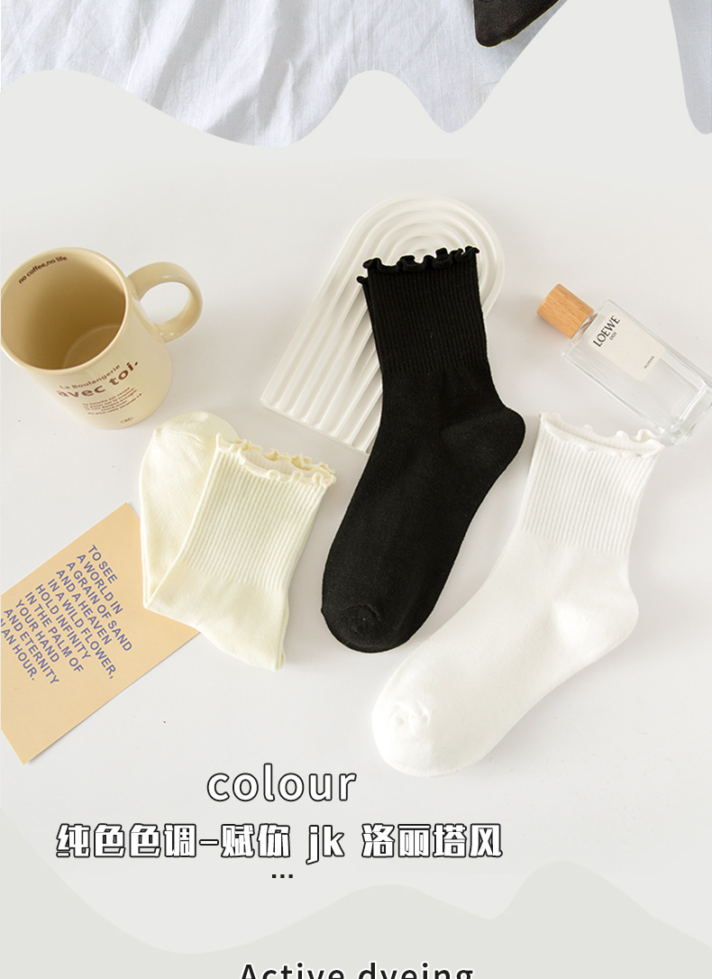 곰팡이 레이스 양말 여성 jk 스타일 중간 종아리 길이 양말 봄과 여름 한국 스타일 달콤한 더미 양말 통기성 탈취제 스타킹 여성