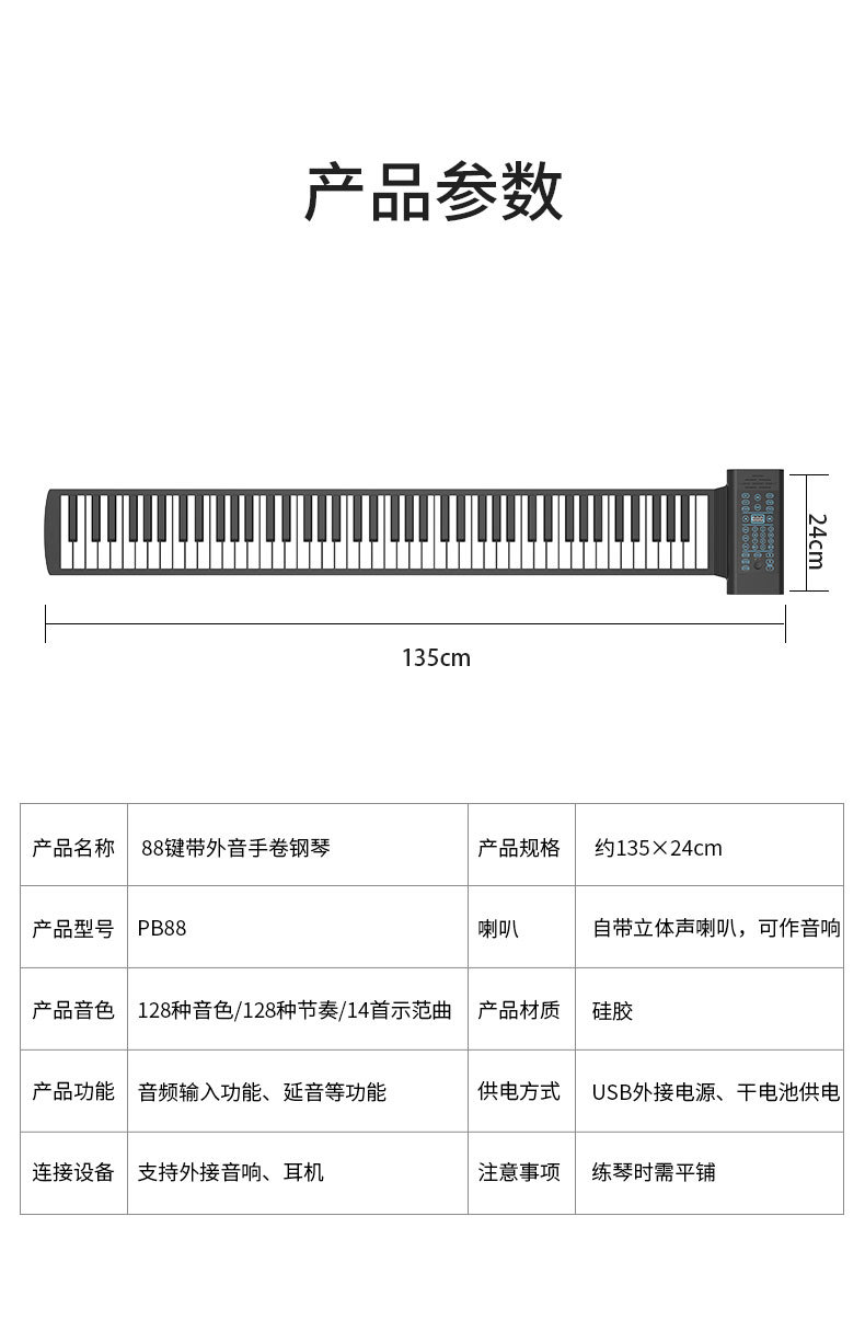 Ousol PB88 핸드 롤 전자 오르간 88 키 실리콘 피아노 휴대용 접이식 학생 어린이 초급 성인