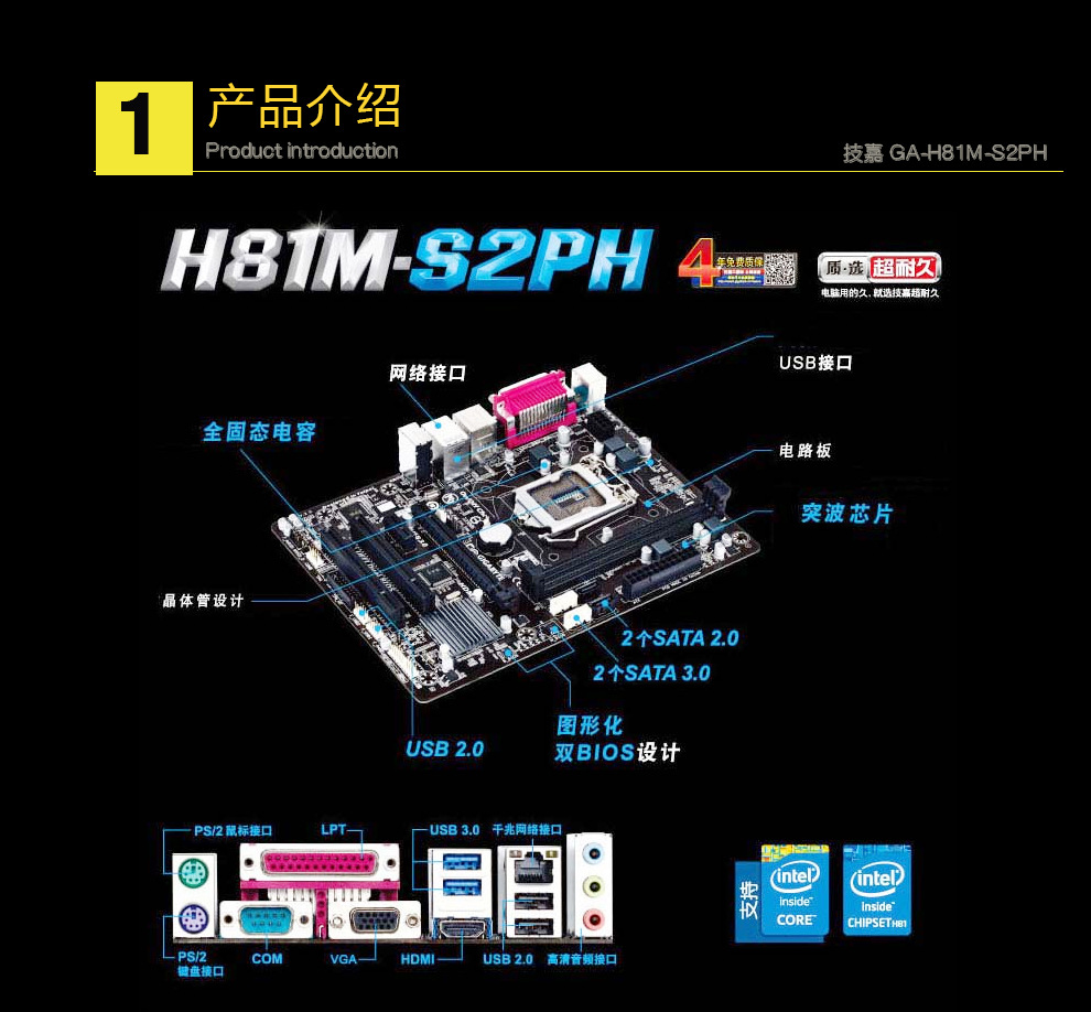 인텔 기가 바이트 H81M-S2PH 4 세대 CPU LGA1150 DDR3 지원스토어 가기