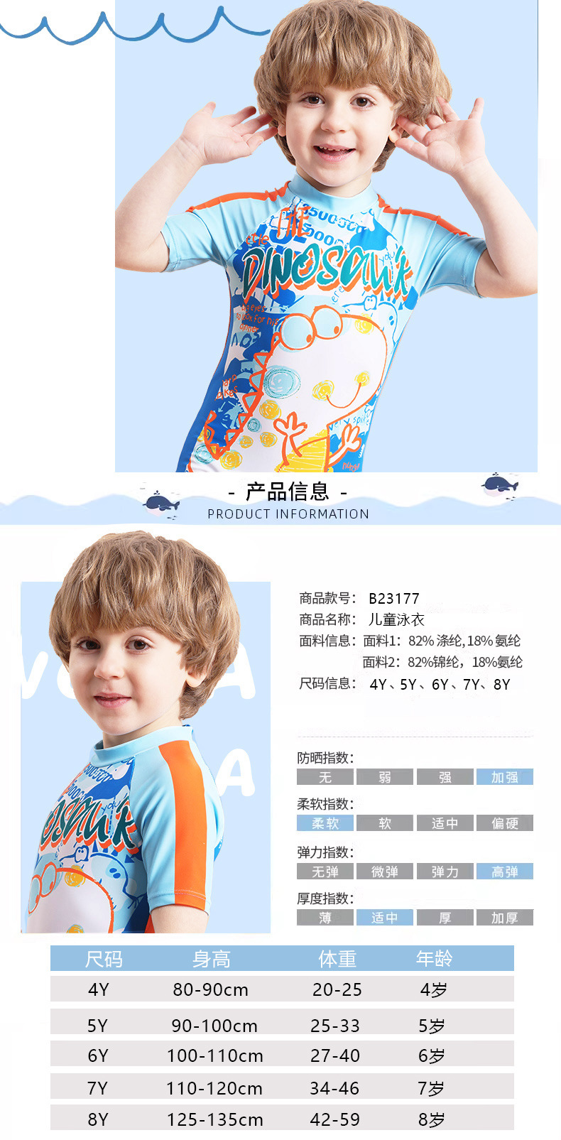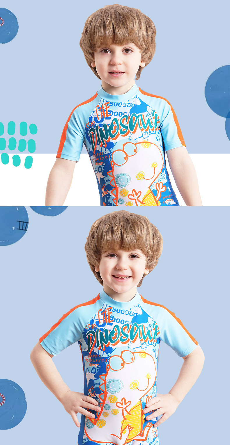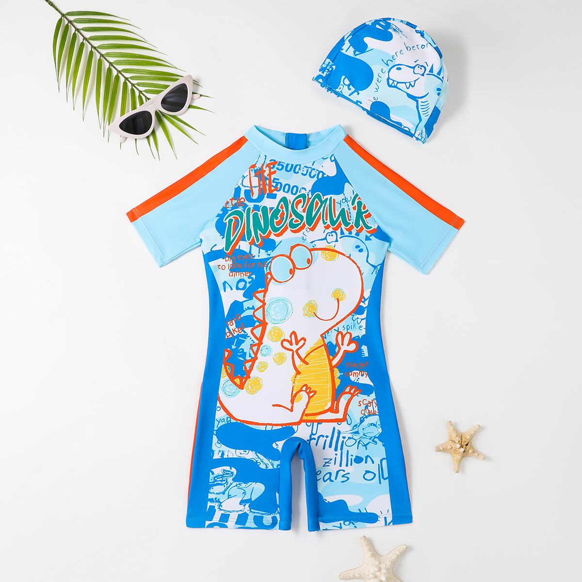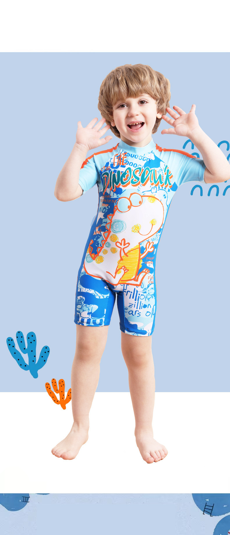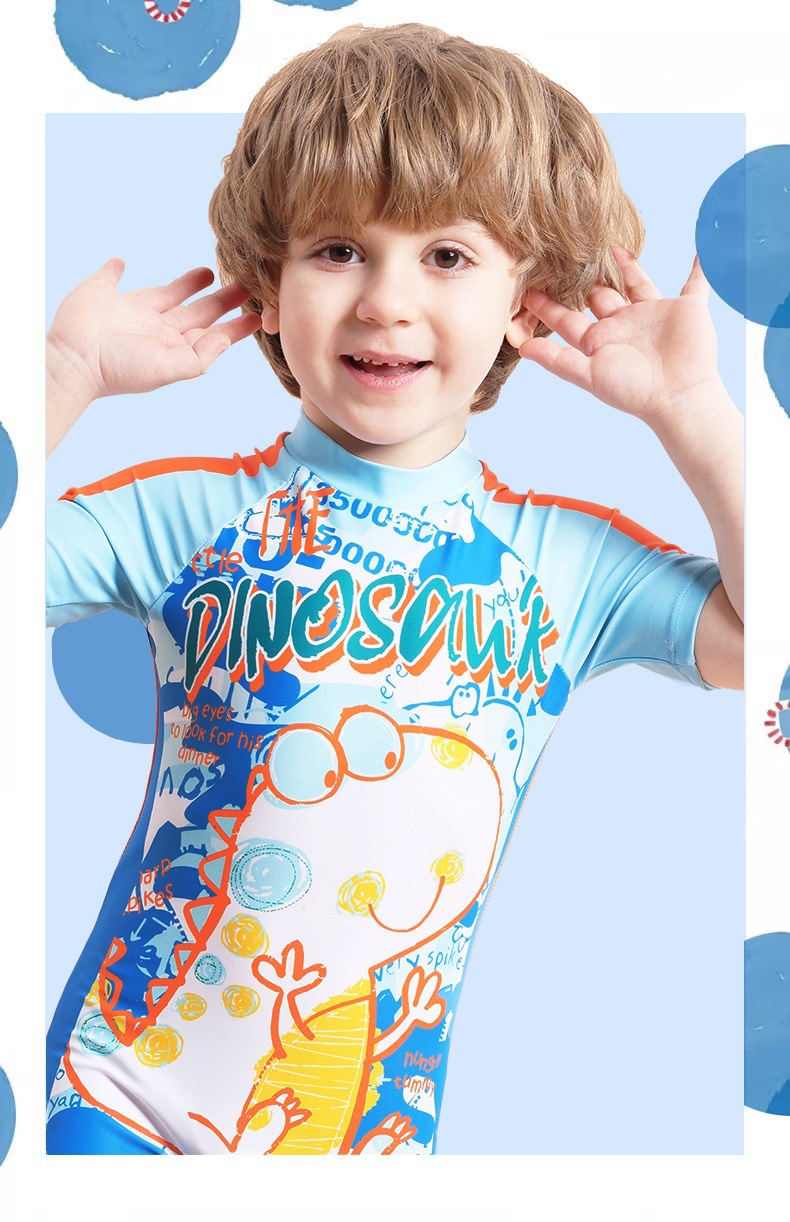 어린이 수영복 남아용 원피스 수영복 2025 신상 반팔 공룡 그래피티 자외선 차단 크로스보더 남아 수영복 여름스토어 가기
