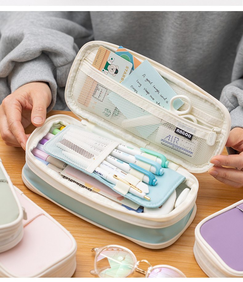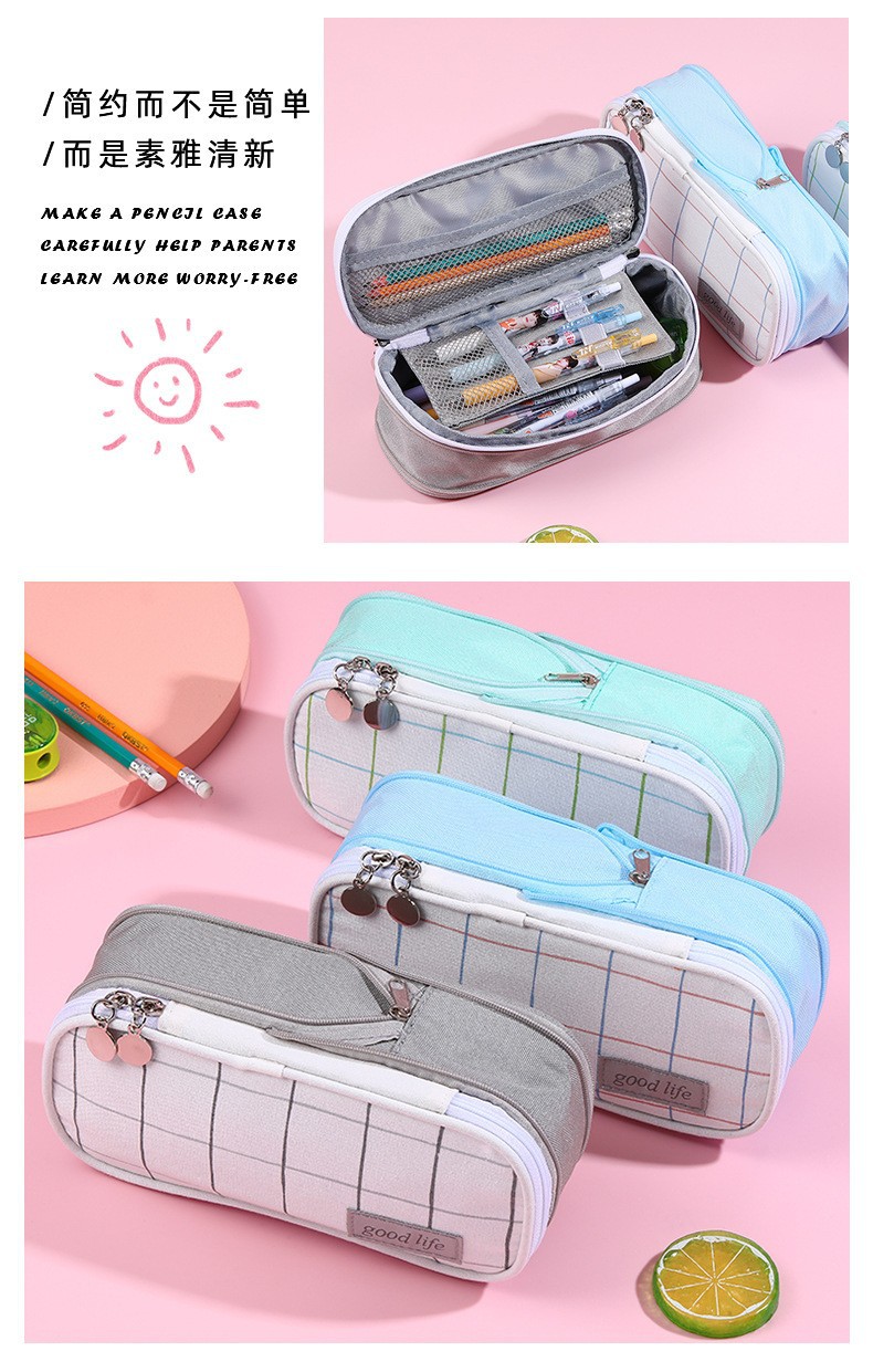 Guoyu 캔버스 격자 무늬 연필 케이스 확장 더블 지퍼 대용량 연필 문구 보관 가방 남녀 학생스토어 가기