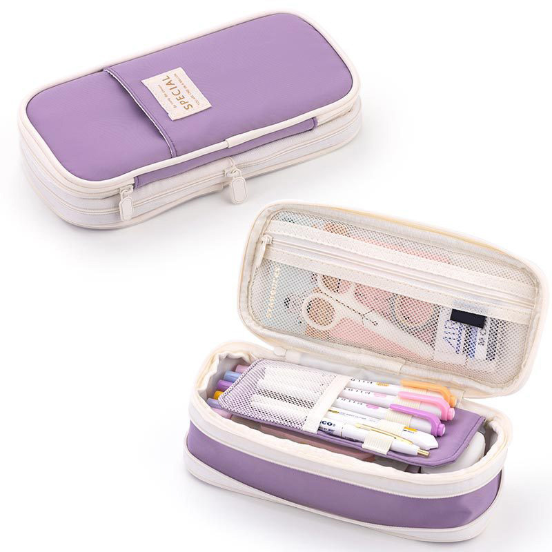 Guoyu 캔버스 격자 무늬 연필 케이스 확장 더블 지퍼 대용량 연필 문구 보관 가방 남녀 학생