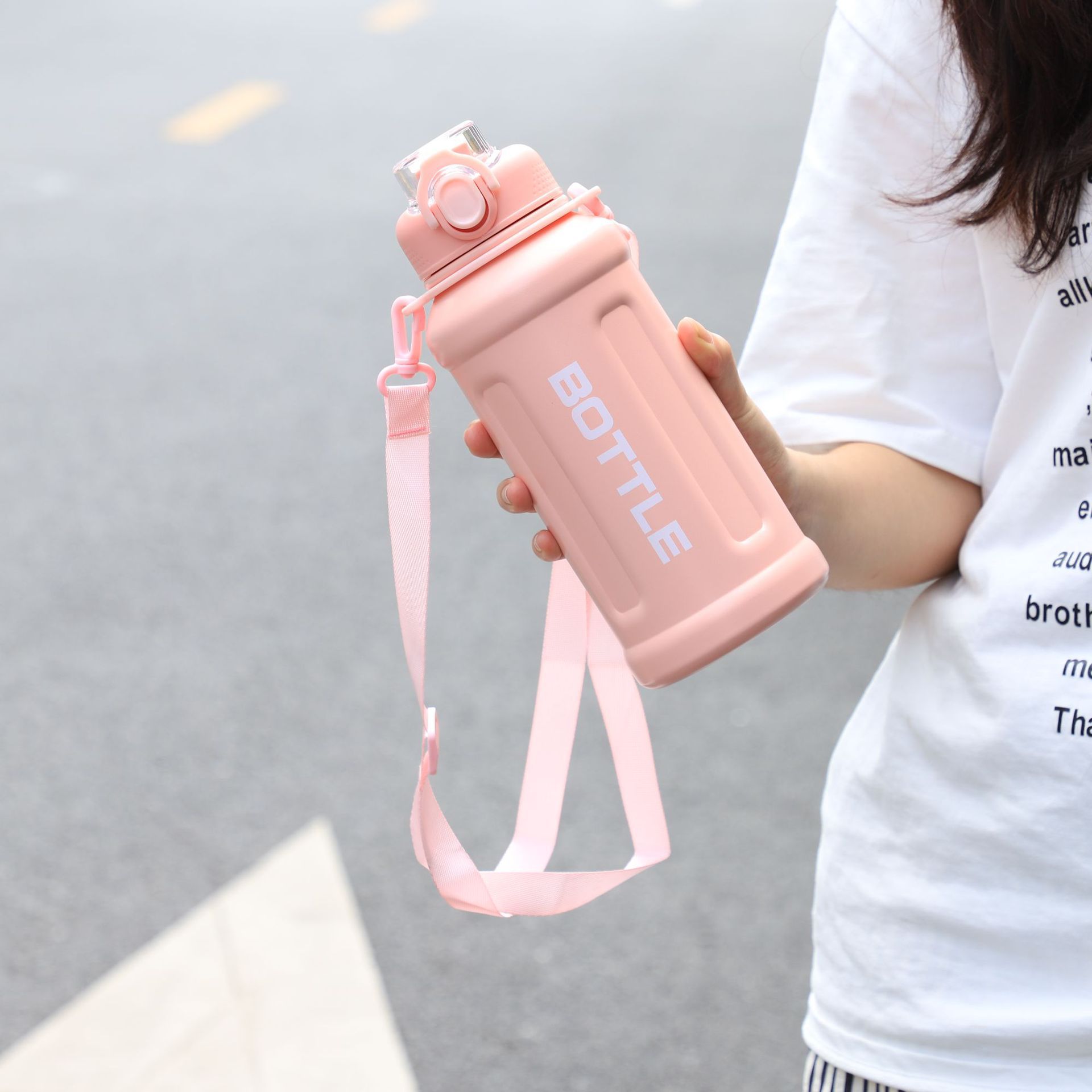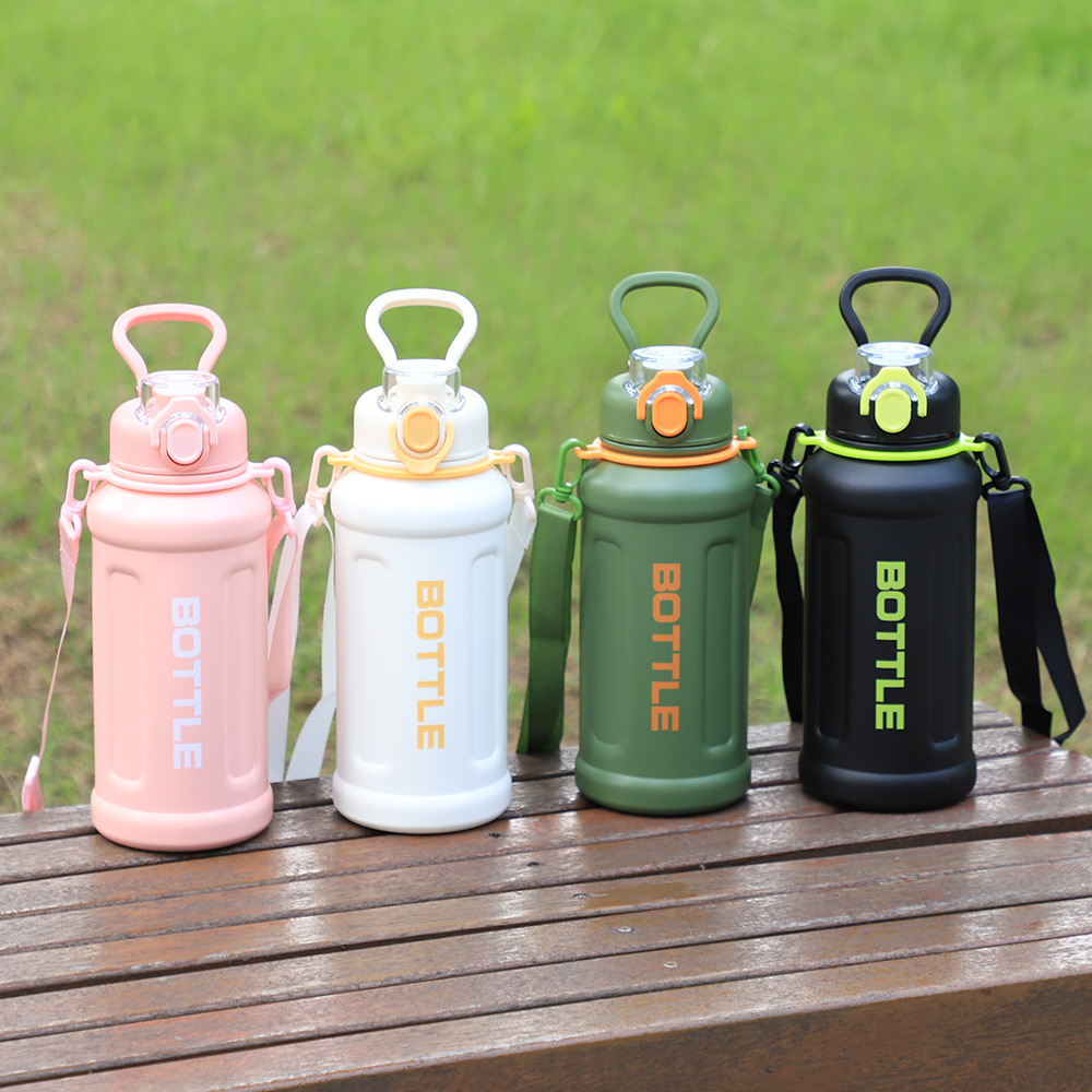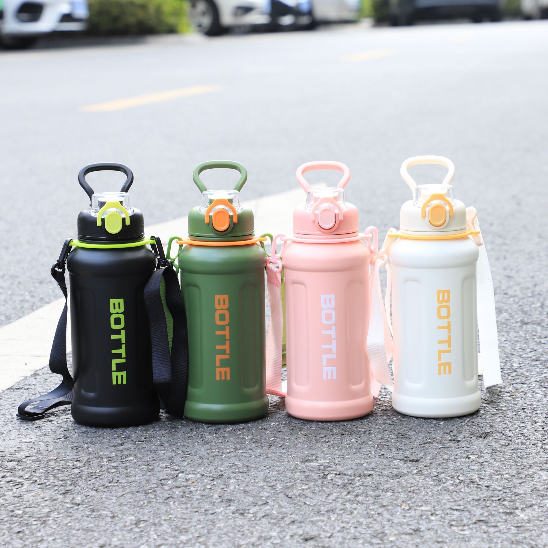 대용량 크로스 바디 학생 휴대용 워터 컵 304 스테인레스 스틸 진공 컵 야외 스포츠 등산 주전자 도매