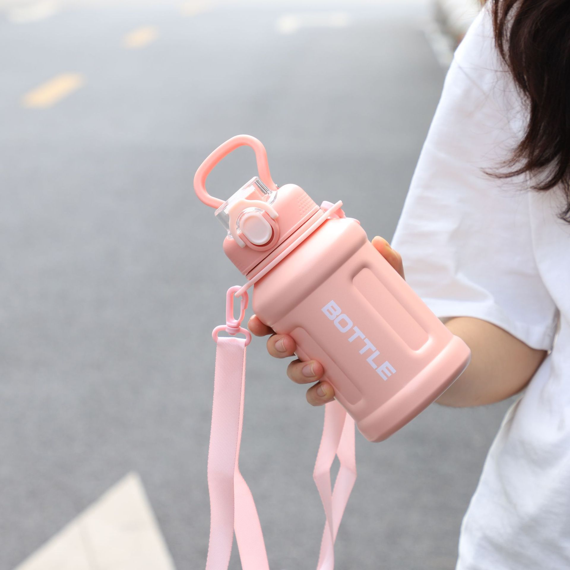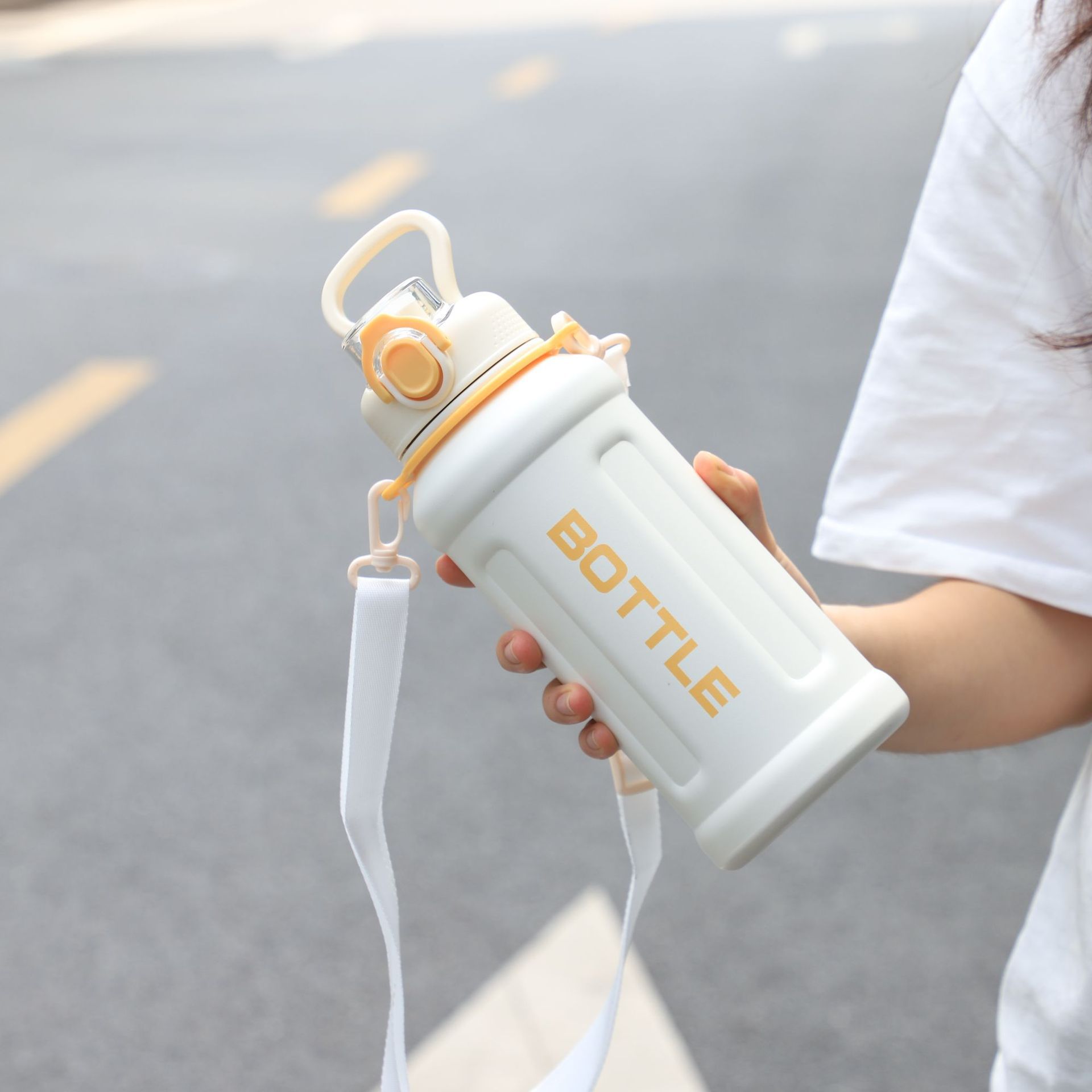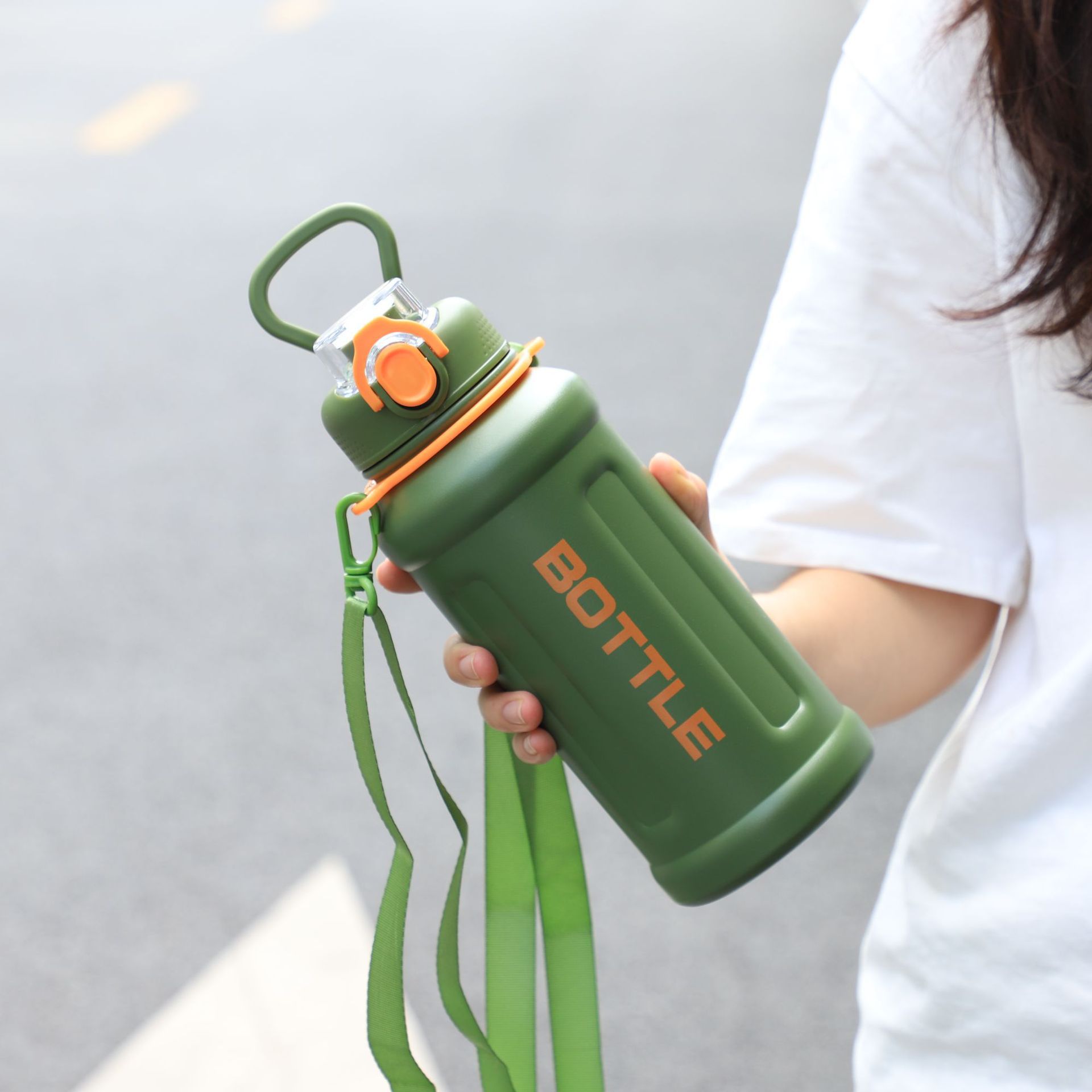 대용량 크로스 바디 학생 휴대용 워터 컵 304 스테인레스 스틸 진공 컵 야외 스포츠 등산 주전자 도매