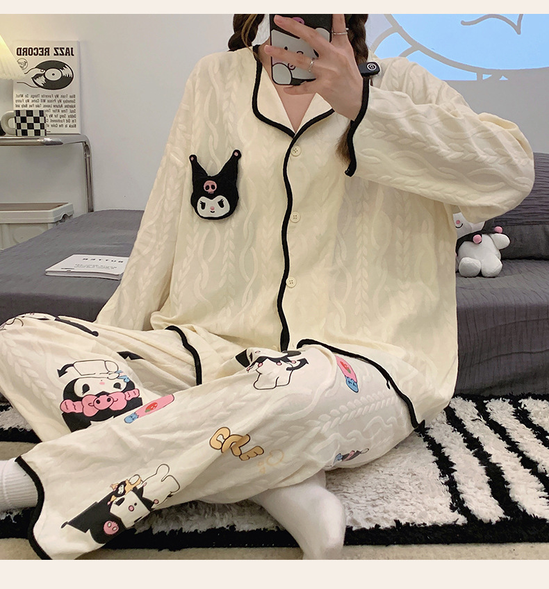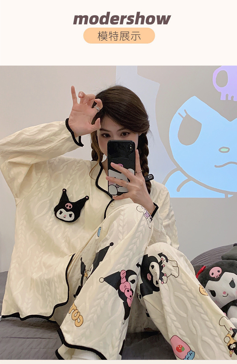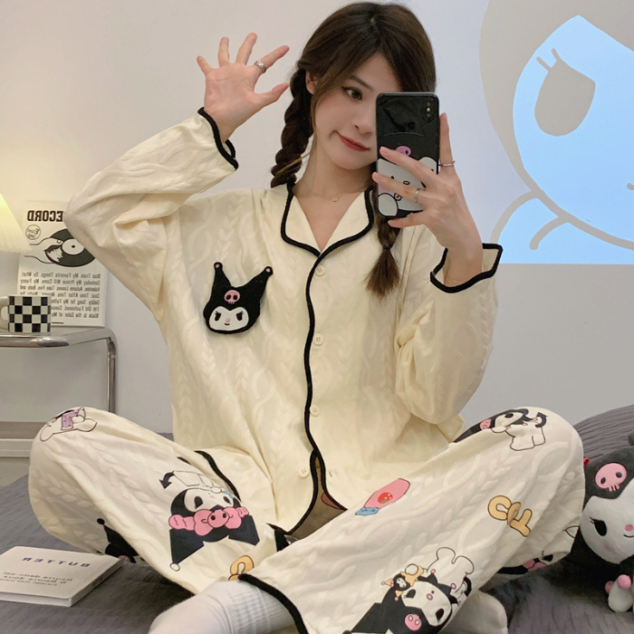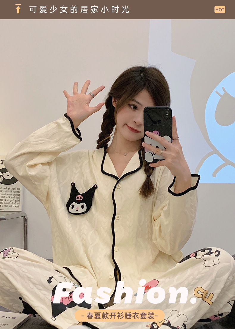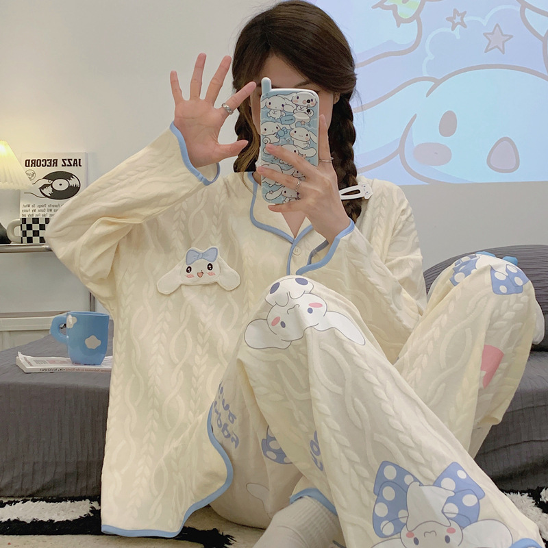 새로운 귀여운 잠옷 여성의 봄과 가을 긴팔 학생 온라인 빨간 만화 느슨한 세트 달콤한 홈 착용 투피스 세트스토어 가기