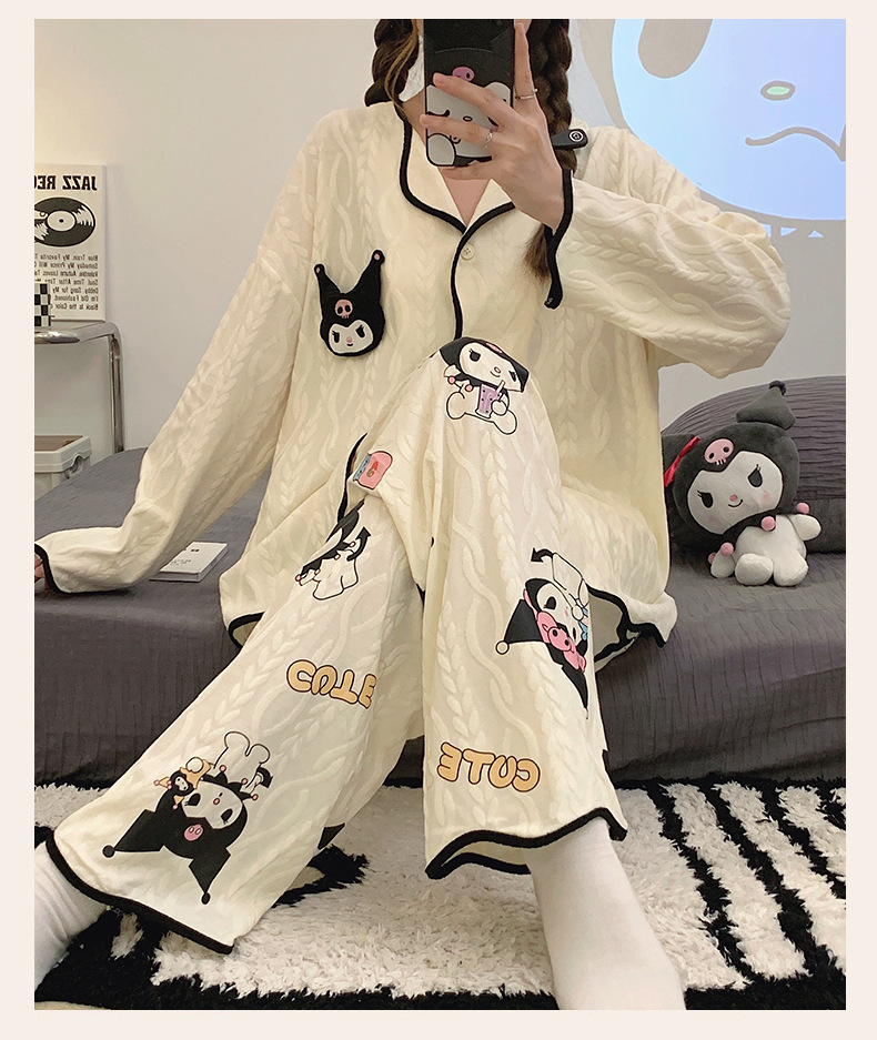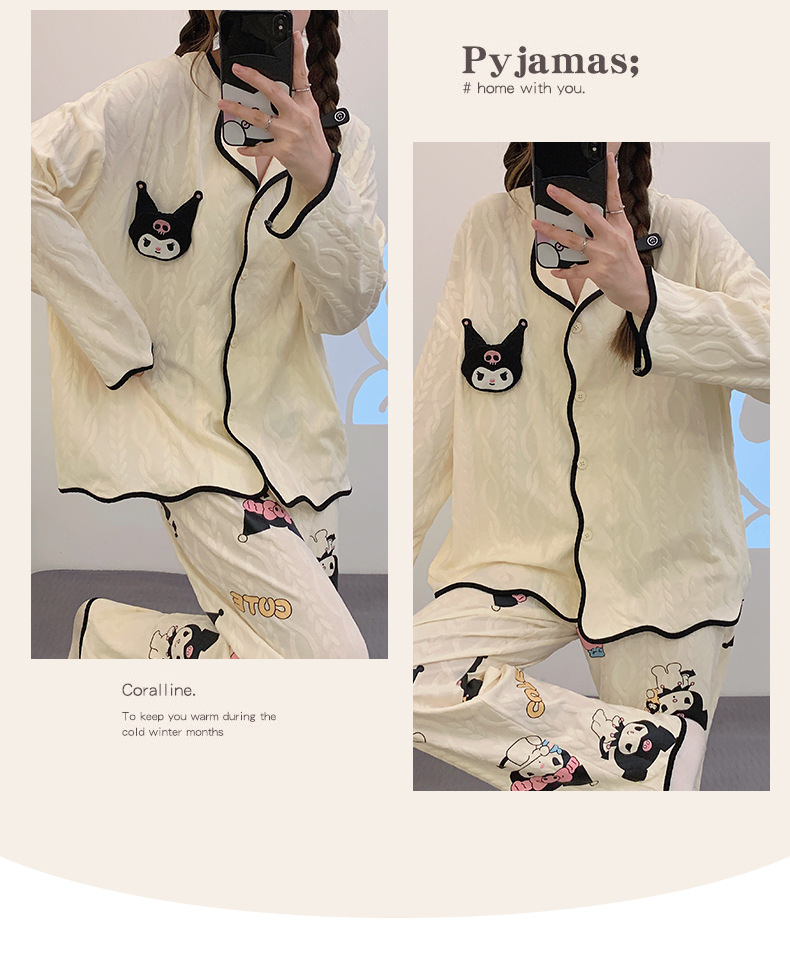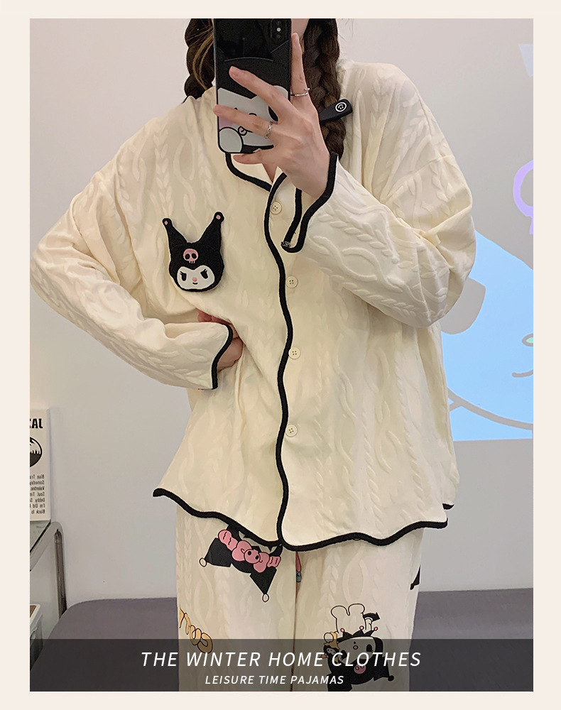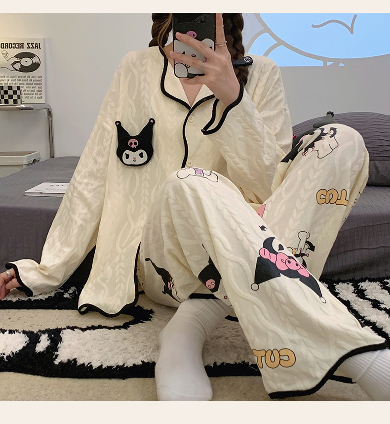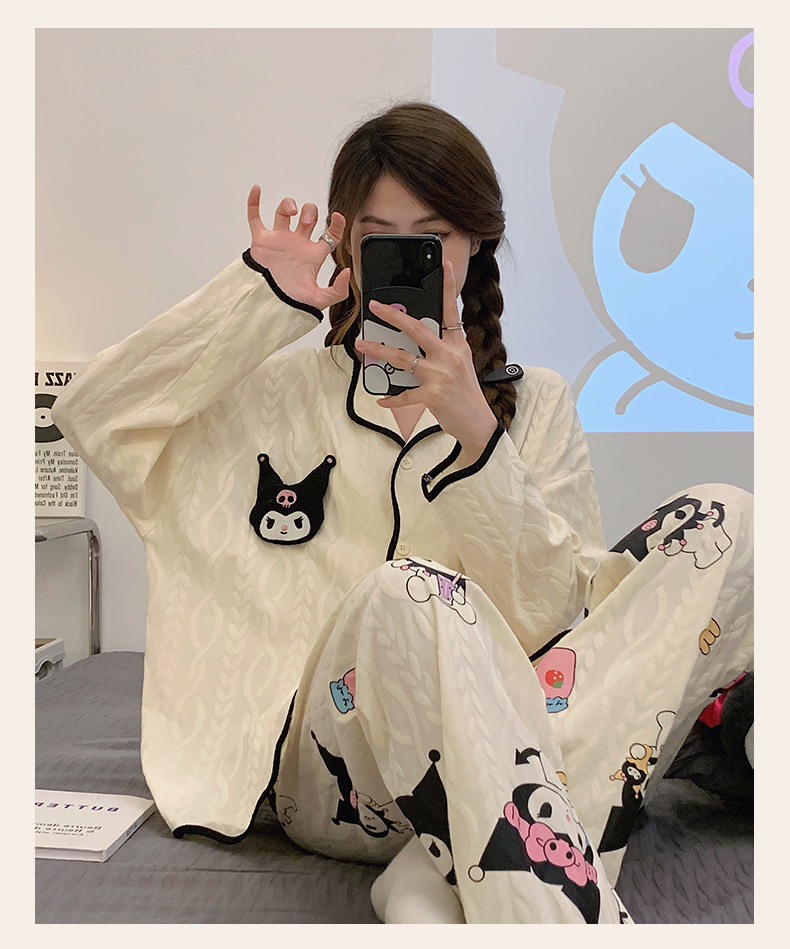 새로운 귀여운 잠옷 여성의 봄과 가을 긴팔 학생 온라인 빨간 만화 느슨한 세트 달콤한 홈 착용 투피스 세트스토어 가기