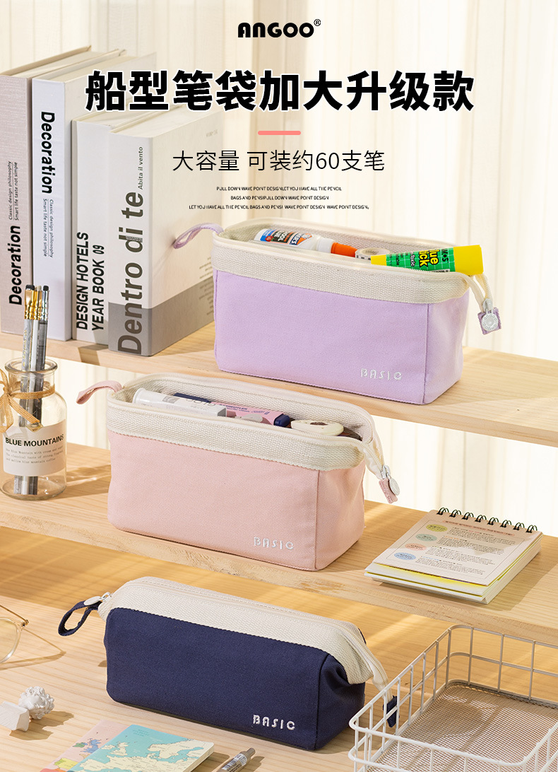 Ankou 보트 형 연필 케이스 간단한 대용량 중학교 소년 소녀 문구 상자 높은 모양의 새로운 단색 연필 가방