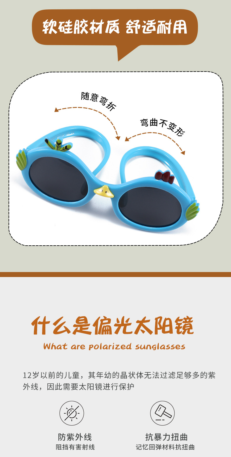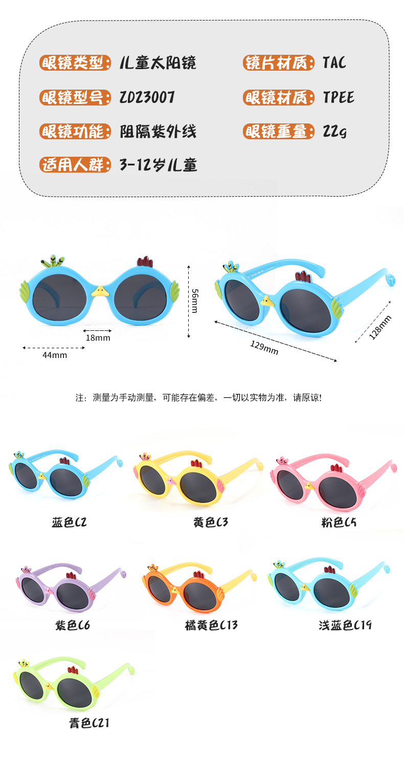 새로운 귀여운 치킨 모양 어린이 선글라스 개성 패션 어린이 편광 만화 선글라스 유행 ZD23007