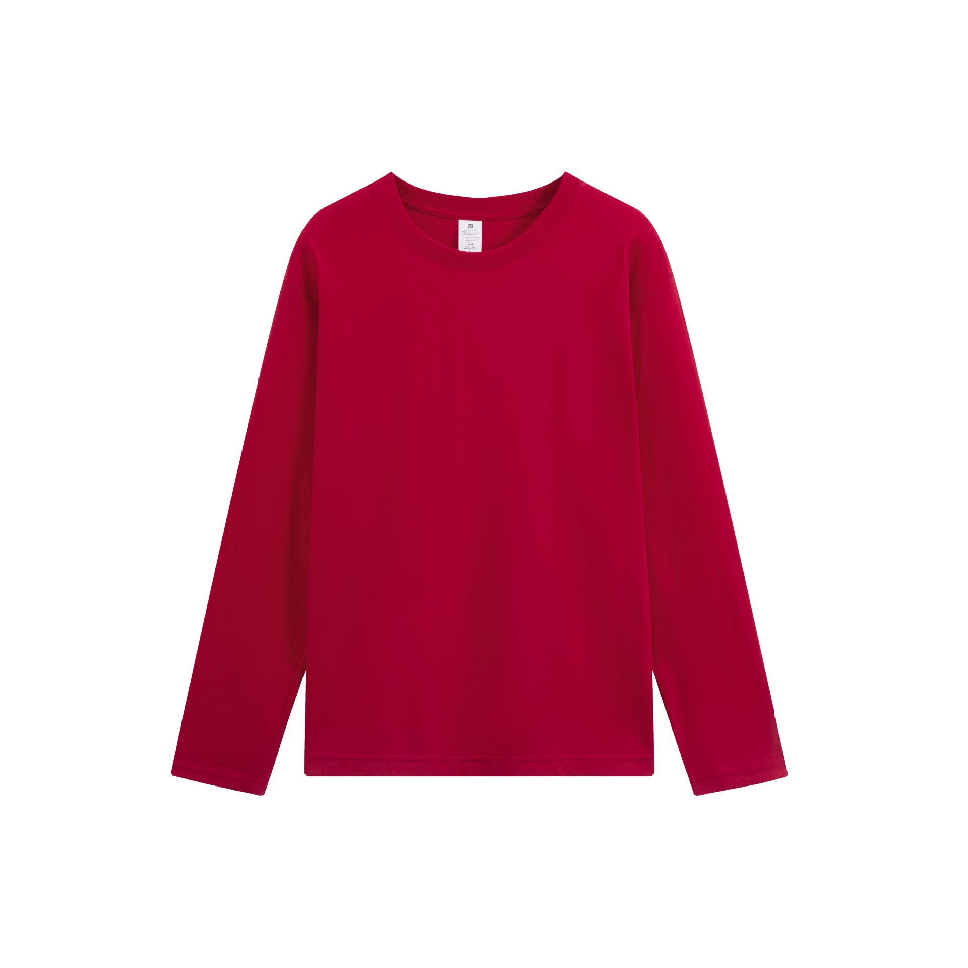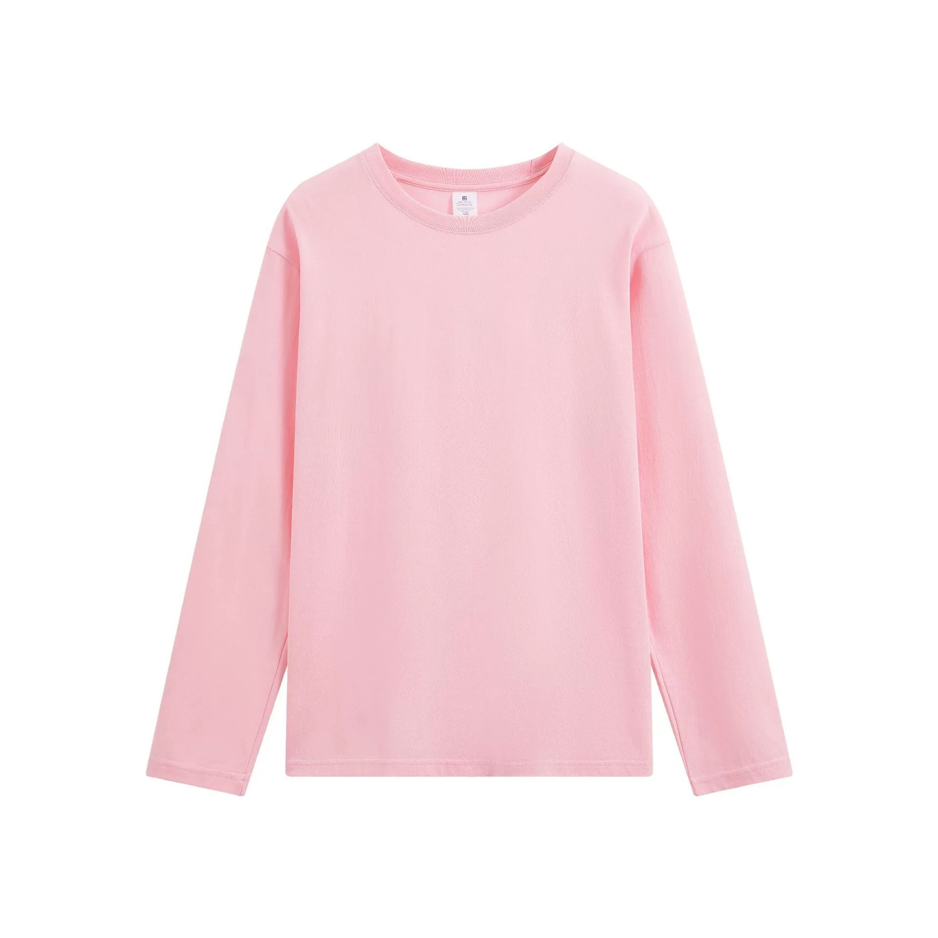 220g 남성 순수 코튼 신강 빗질 코튼 트렌디 브랜드 솔리드 컬러 남성과 여성 느슨한 라운드 넥 긴팔 티셔츠 옷 바닥 셔츠