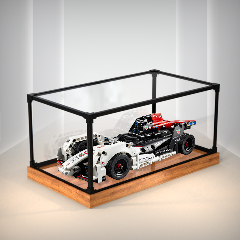 우드 그레인 디스플레이 박스 레고 42137 포르쉐 포뮬러 레이싱 99X 빌딩 블록 모델 커버 방진 아크릴