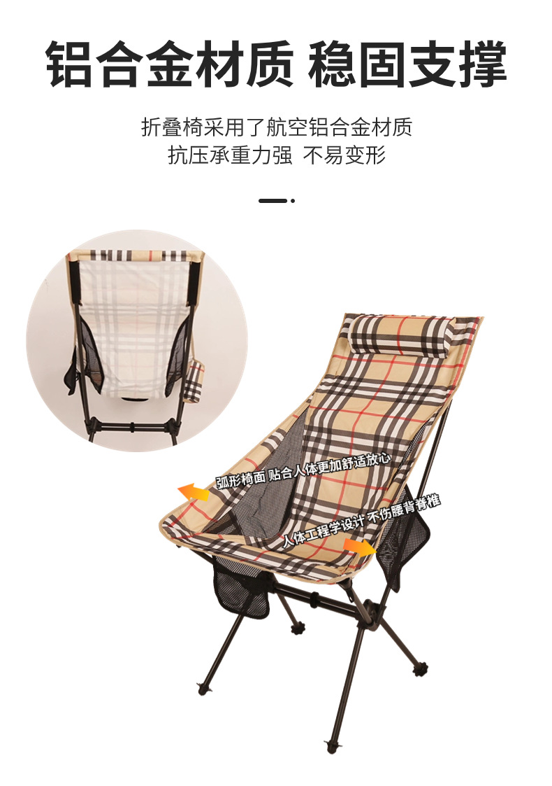 야외 접이식 의자 캠핑 낚시 의자 알루미늄 합금 접이식 의자 평행 바 높은 뒤로 접히는 의자 야외 휴대용 낚시 의자