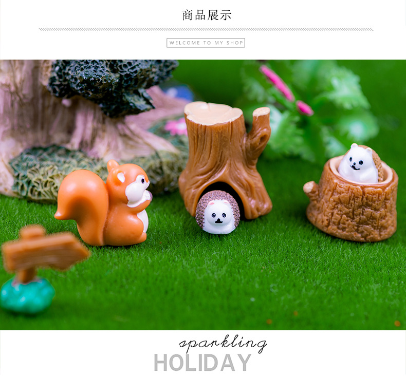 마이크로 풍경 장식품 숲 동물 귀여운 다람쥐 고슴도치 수지 장식품 데스크탑 자동차 장식 공예 장식품스토어 가기