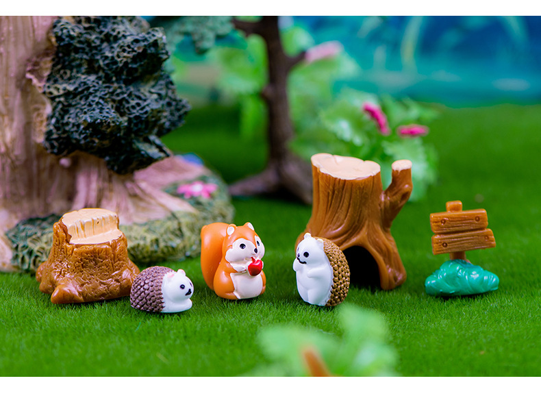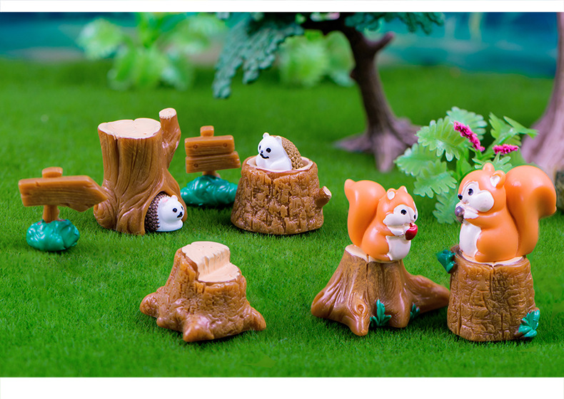마이크로 풍경 장식품 숲 동물 귀여운 다람쥐 고슴도치 수지 장식품 데스크탑 자동차 장식 공예 장식품