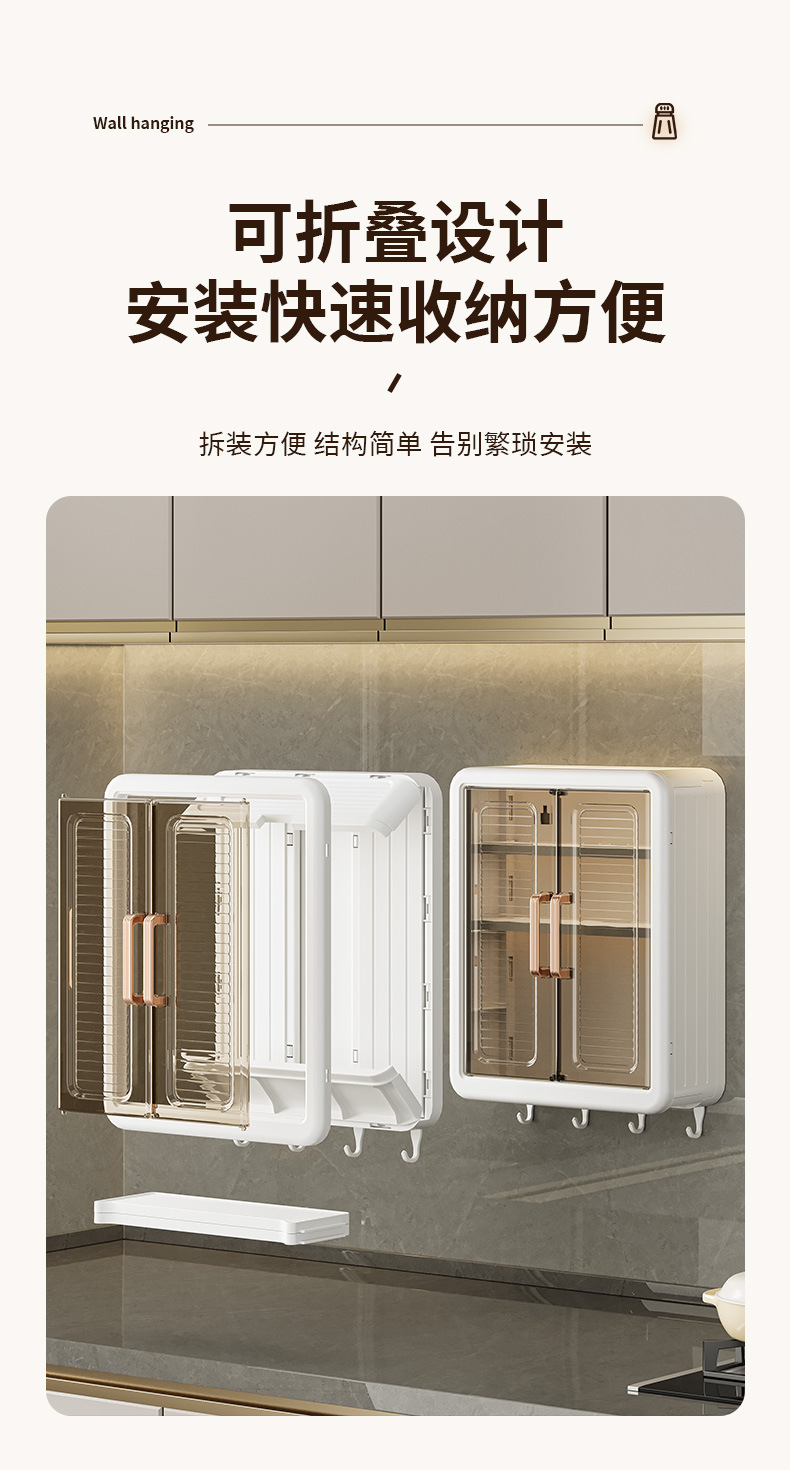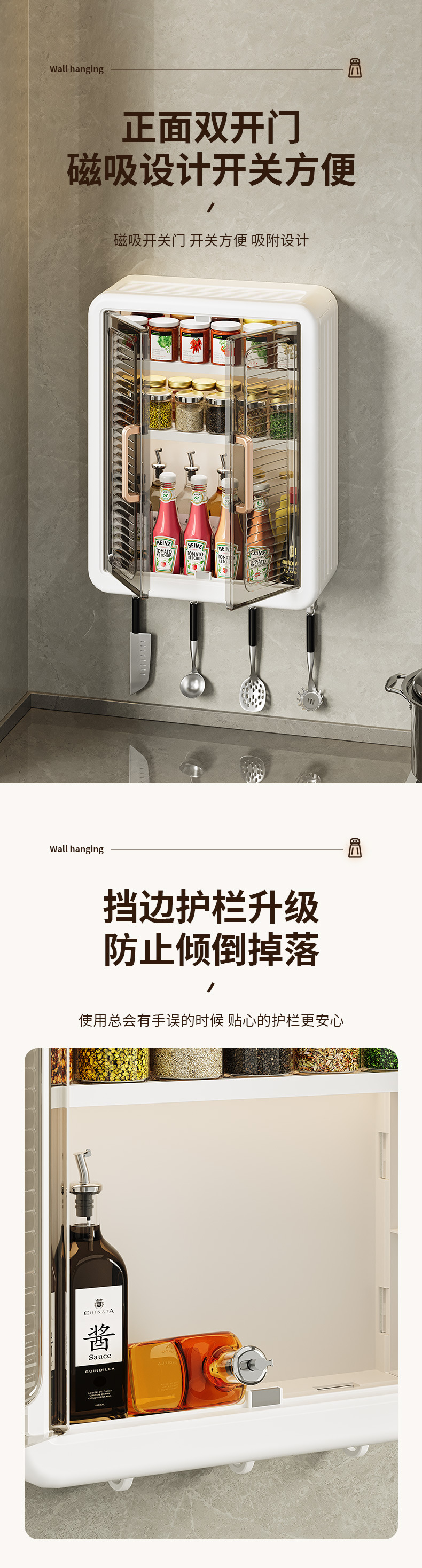 • 주방 벽걸이 선반 보관 상자 [3 층/크림 화이트 업그레이드] 후크 * 4 원활한 페이스트 * 3