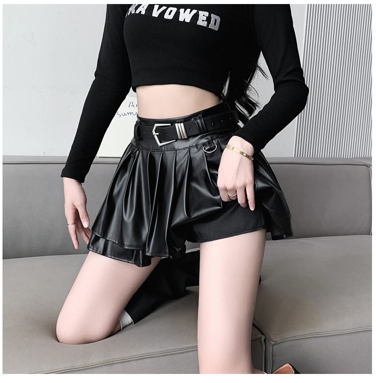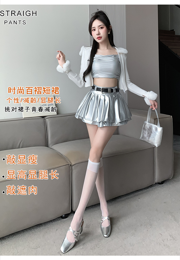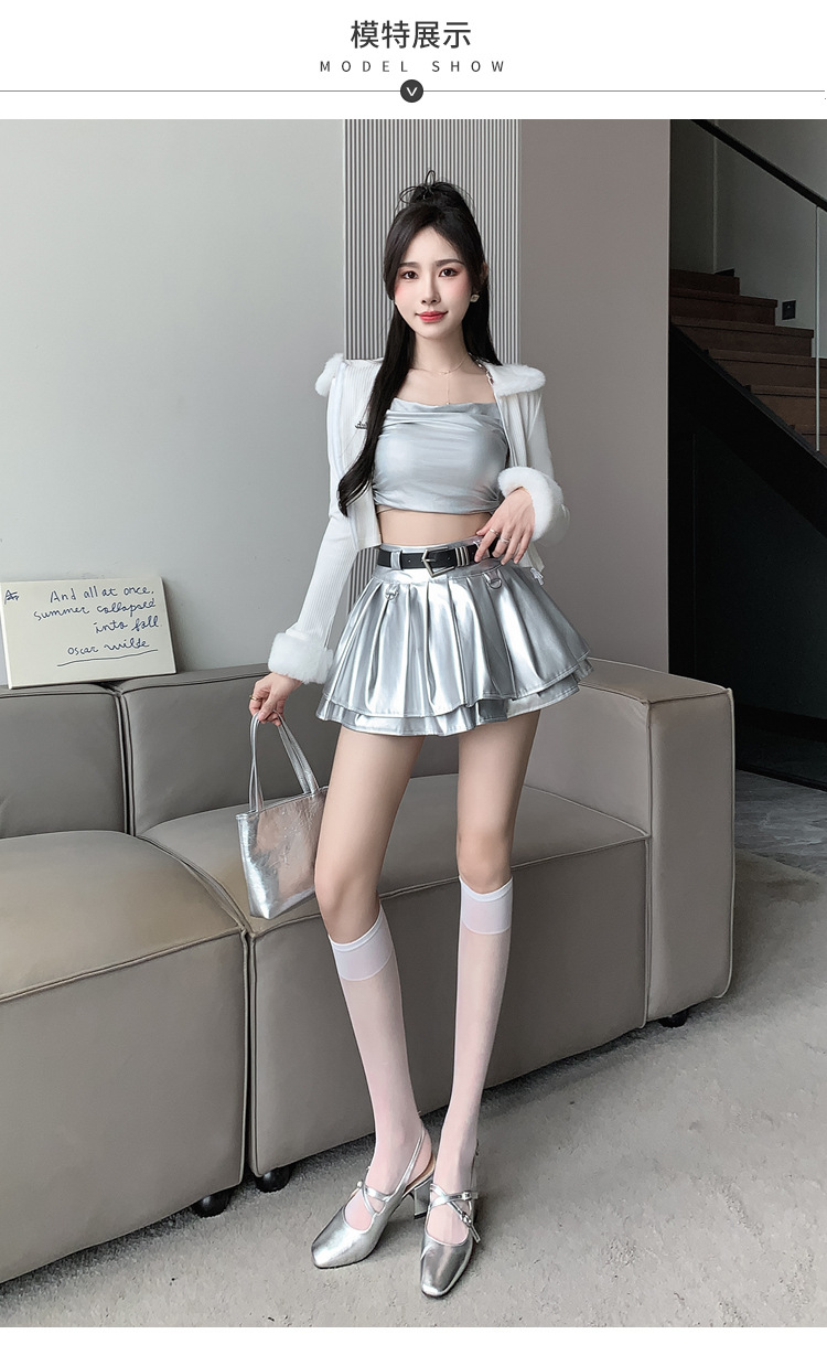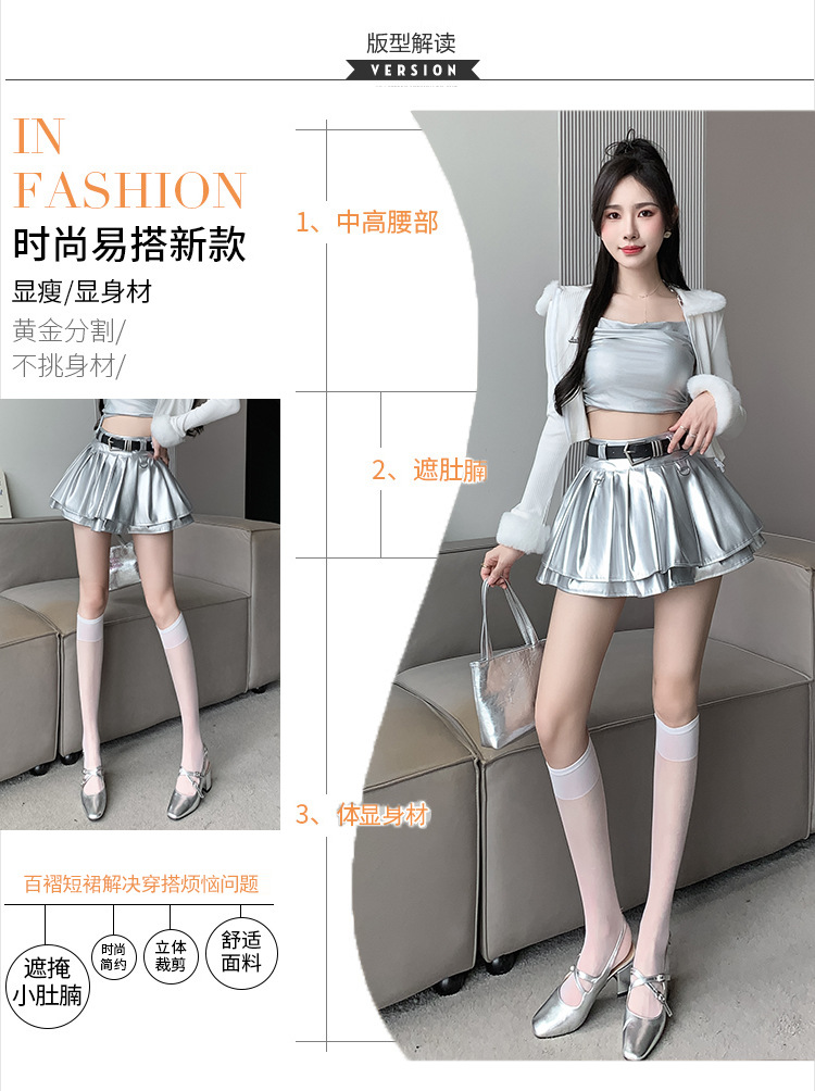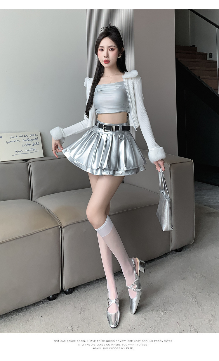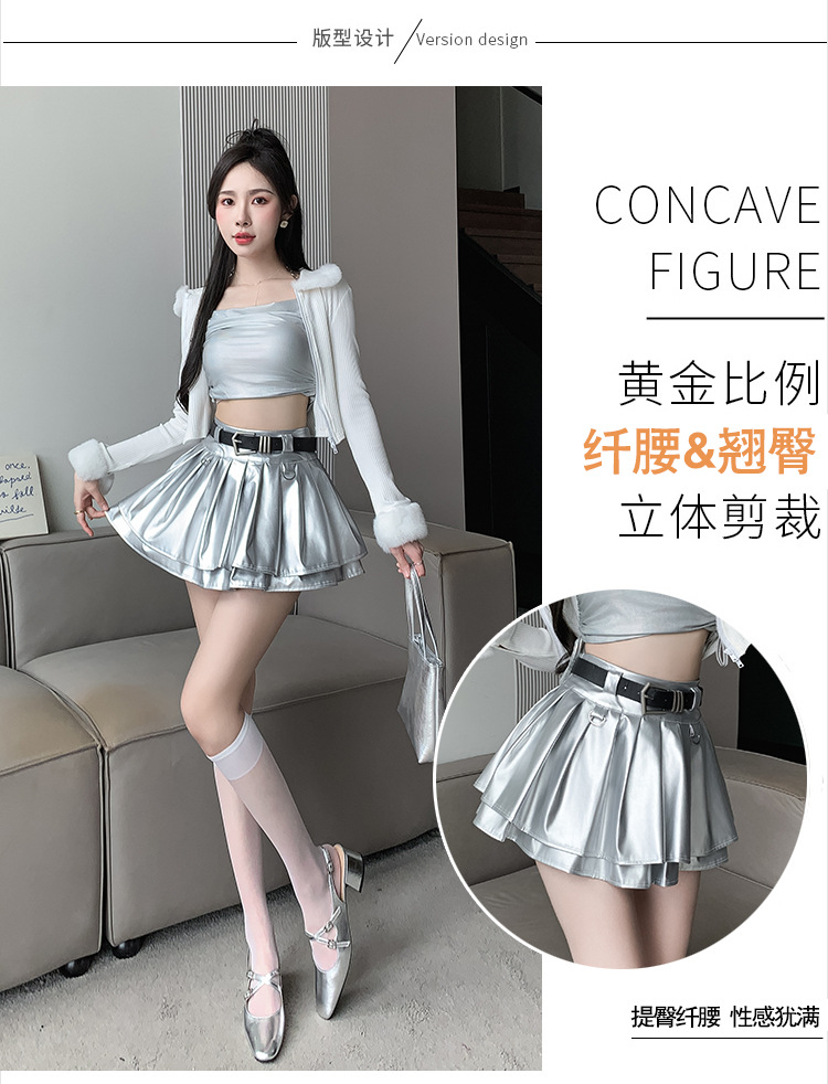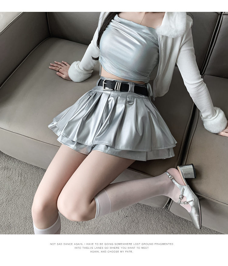 실버 주름 치마 여성의 초가을 새로운 안티 노출 작은 가죽 스커트 하이 웨이스트 핫 걸 A 라인 스커트 도매스토어 가기