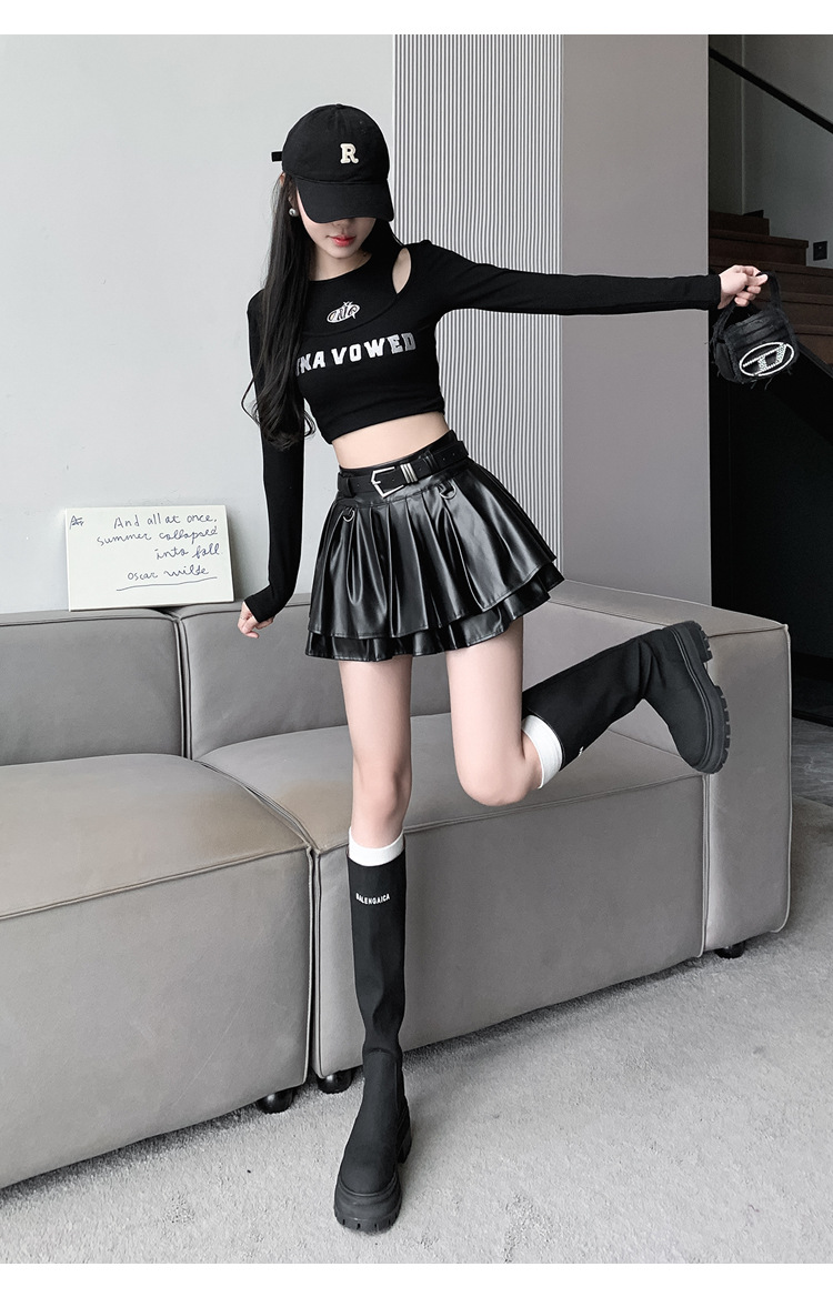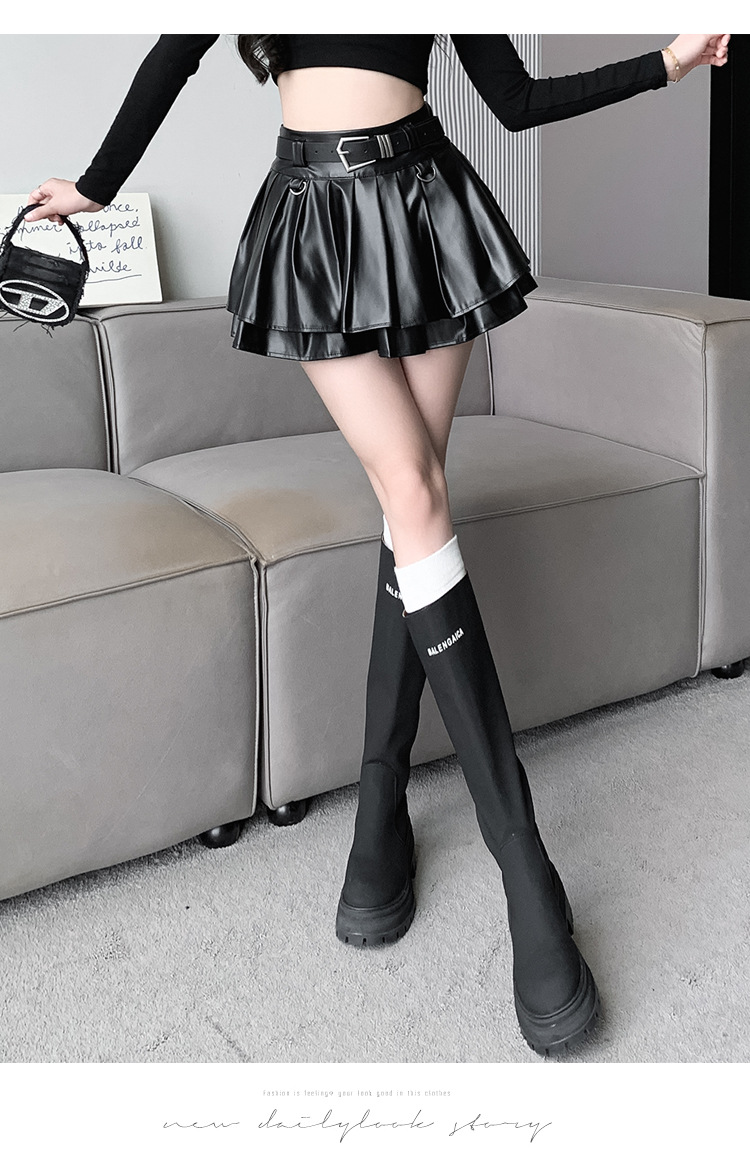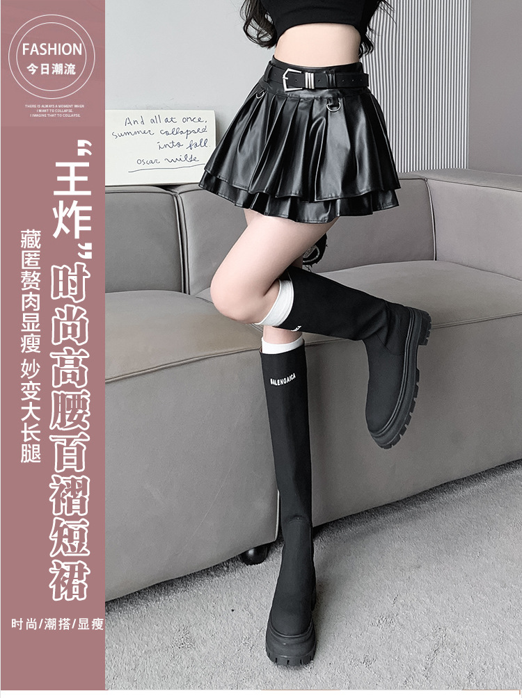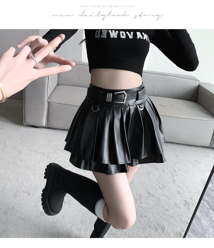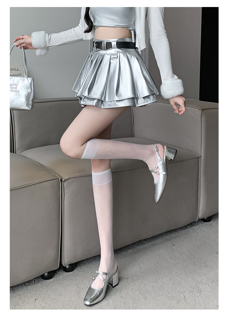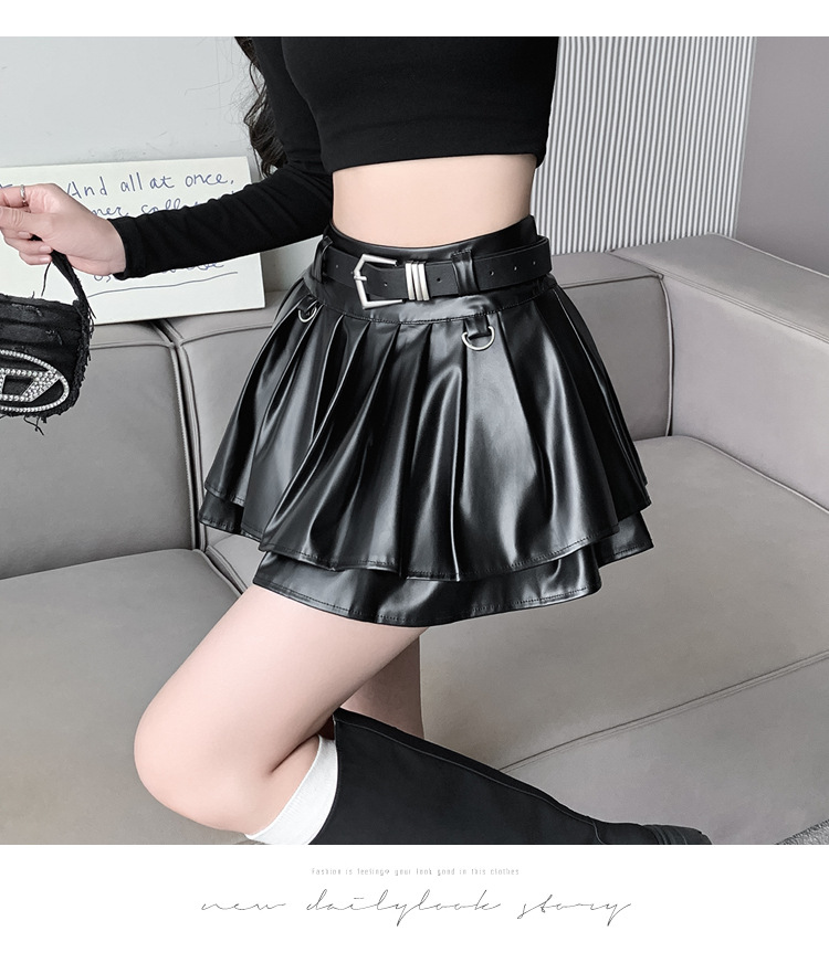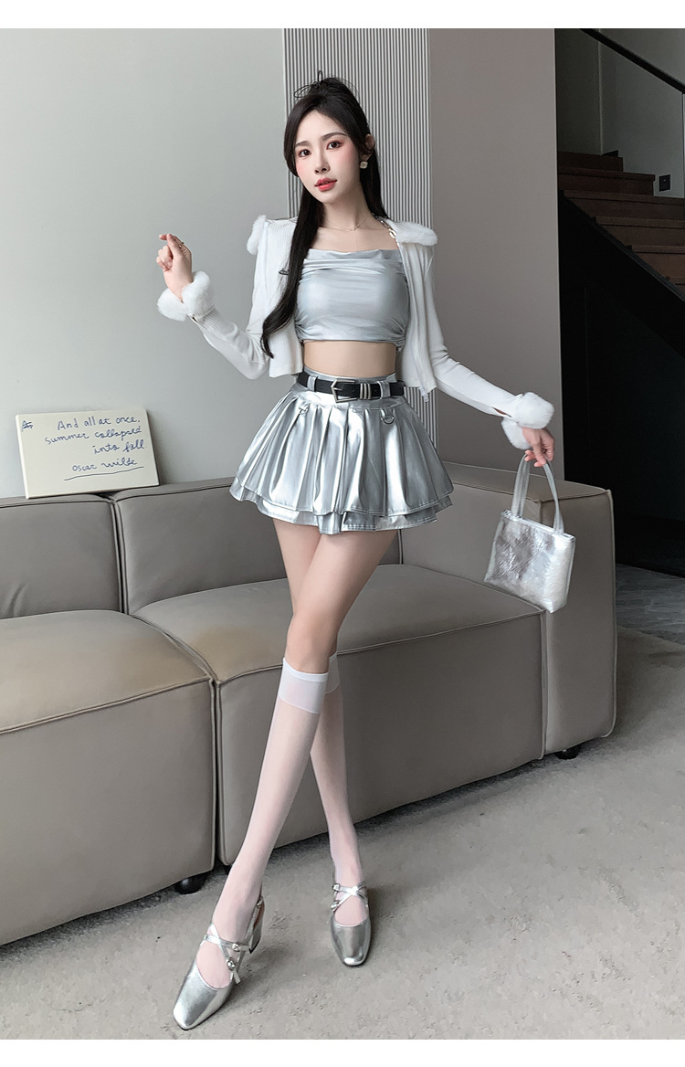 실버 주름 치마 여성의 초가을 새로운 안티 노출 작은 가죽 스커트 하이 웨이스트 핫 걸 A 라인 스커트 도매스토어 가기