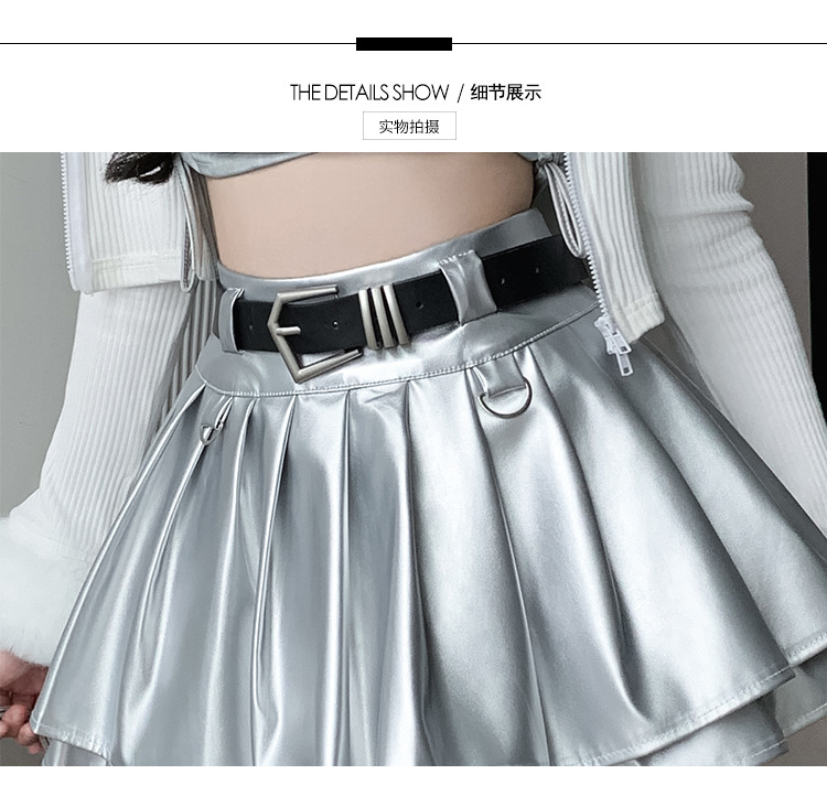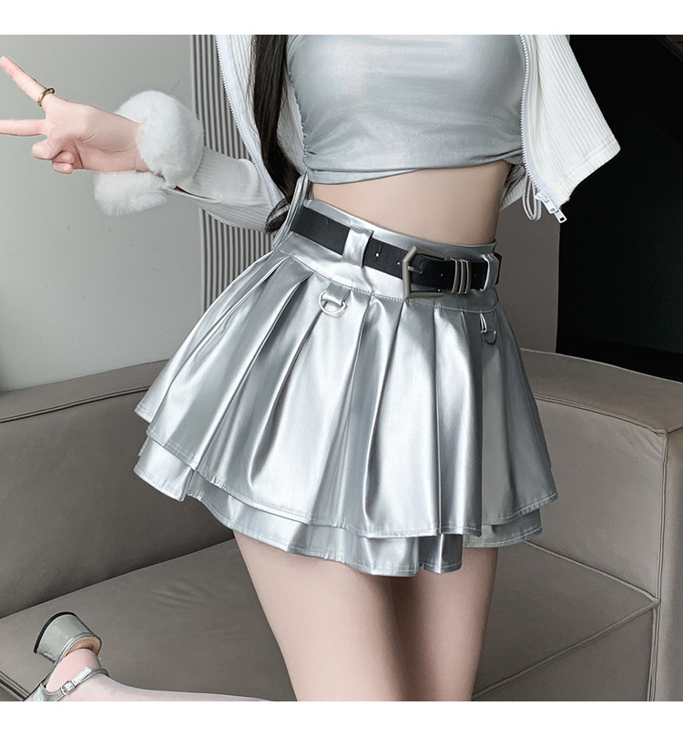 실버 주름 치마 여성의 초가을 새로운 안티 노출 작은 가죽 스커트 하이 웨이스트 핫 걸 A 라인 스커트 도매