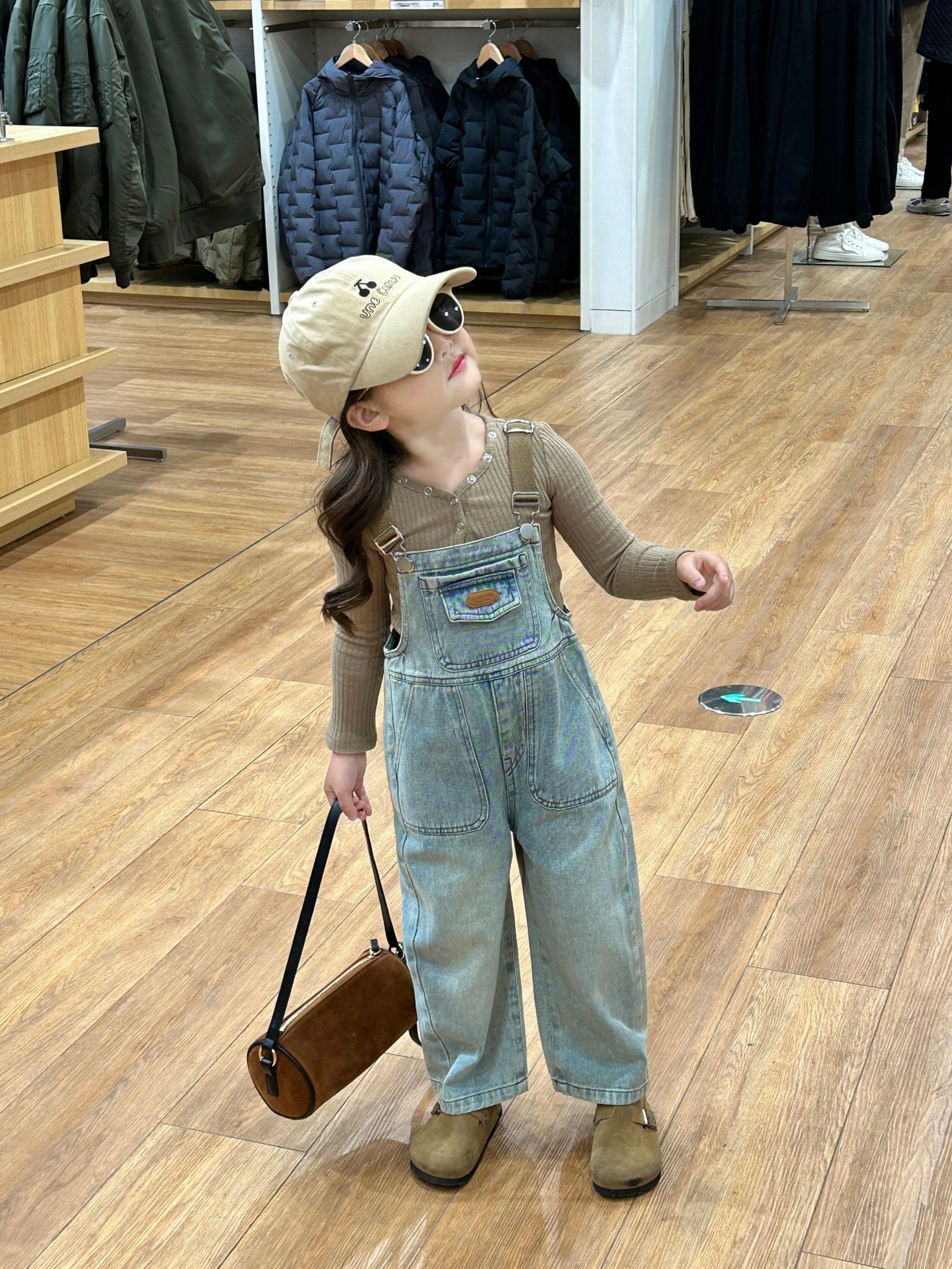2024 봄 새로운 아동복 소녀 틈새 디자인 감각 느슨한 패션 복고풍 데님 세련된스토어 가기