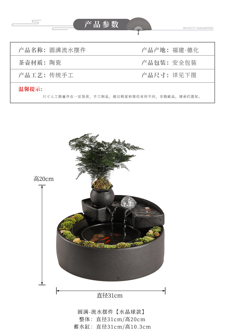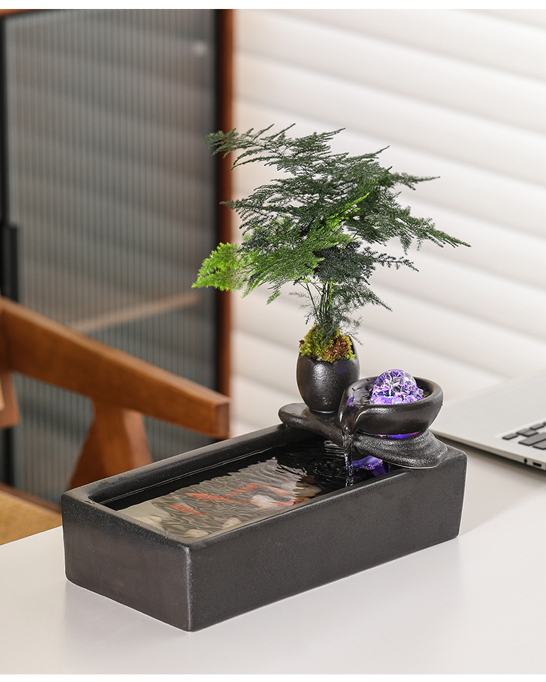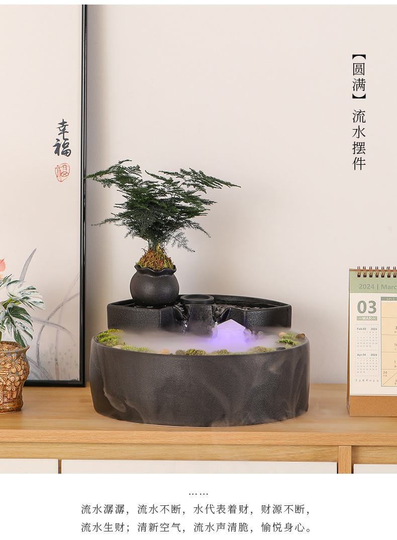 흐르는 물 장식품 순환 분수 창조적 인 세라믹 거실 포춘 사무실 데스크탑 마이크로 풍경 장식