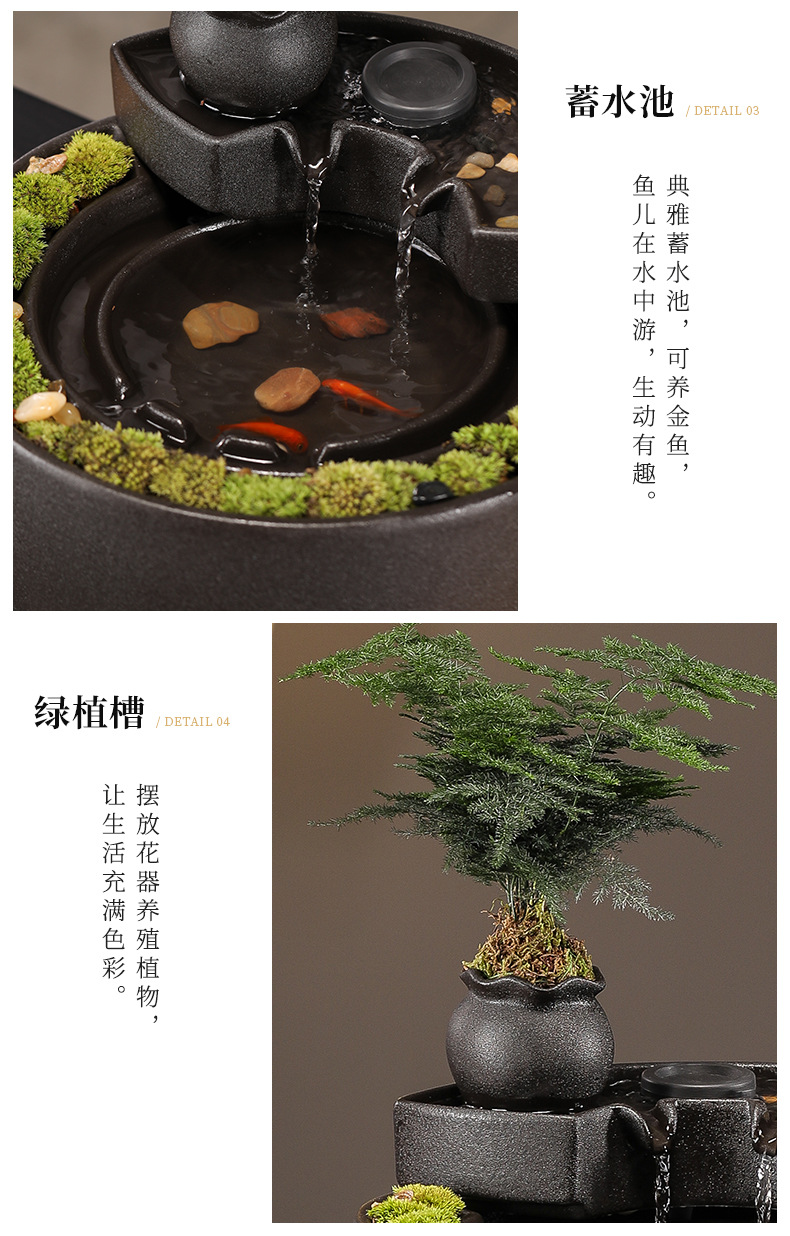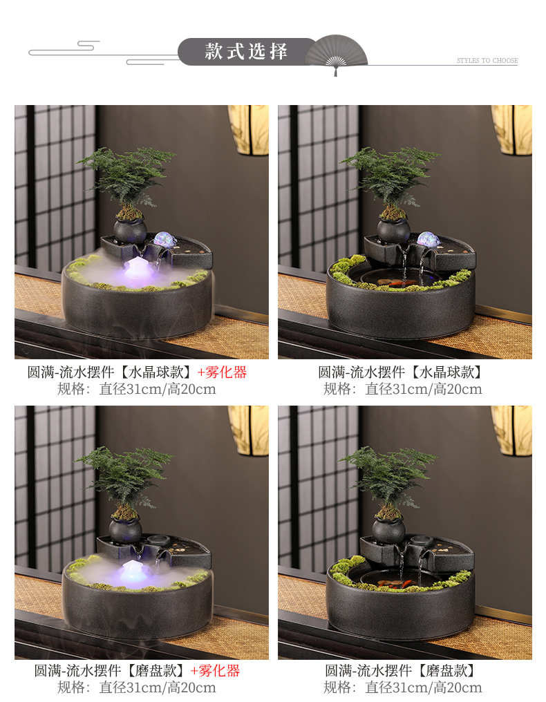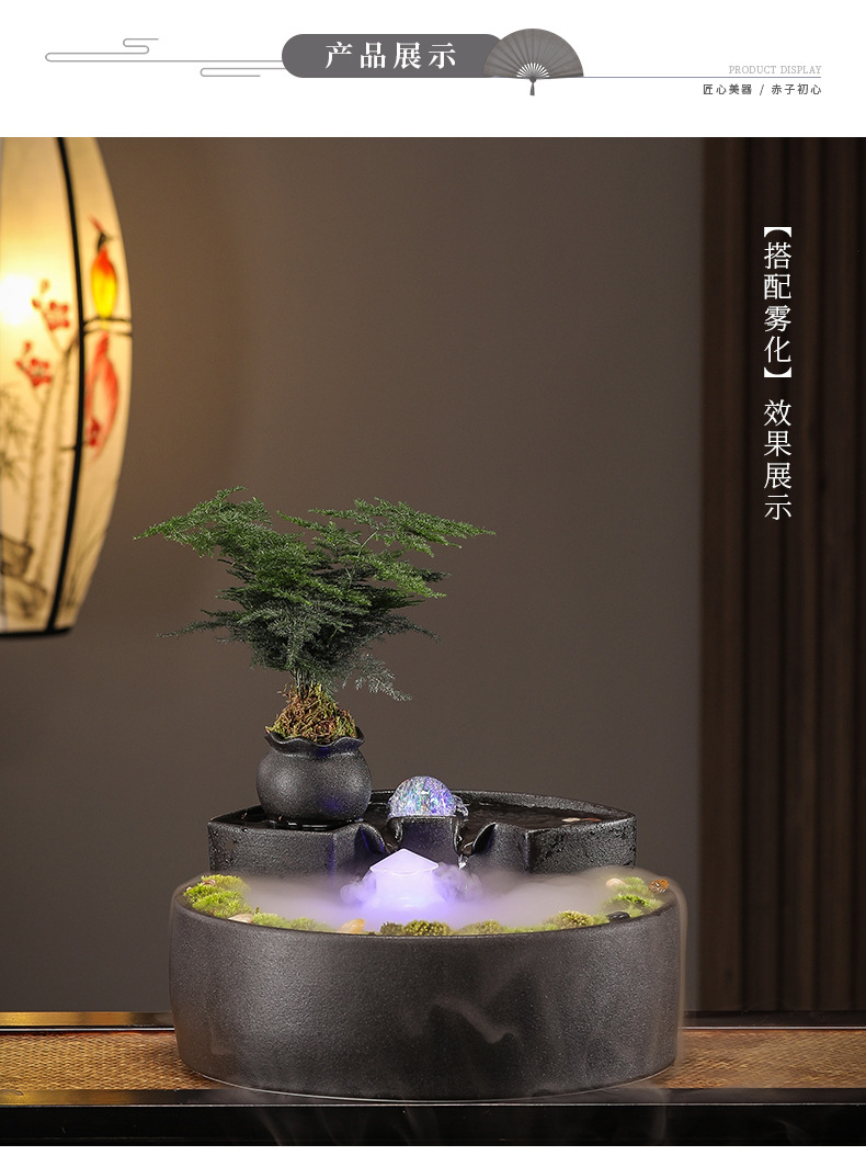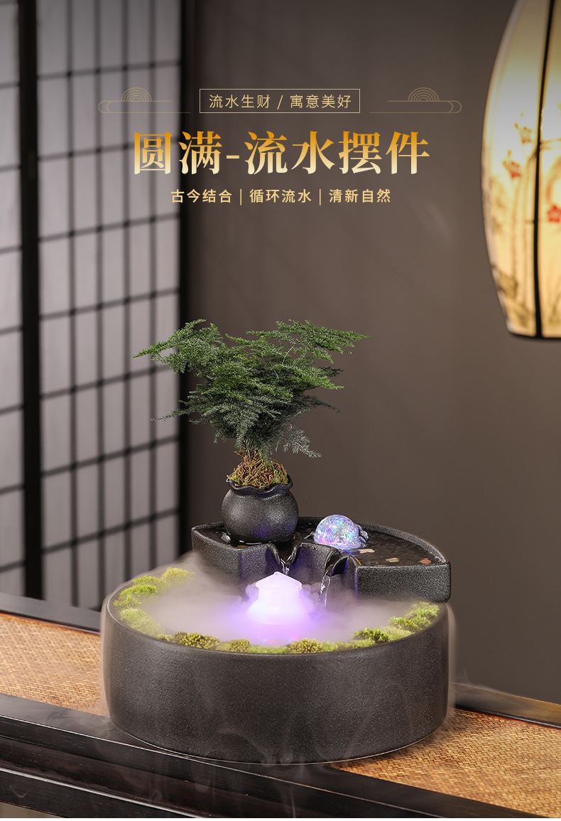 흐르는 물 장식품 순환 분수 창조적 인 세라믹 거실 포춘 사무실 데스크탑 마이크로 풍경 장식스토어 가기
