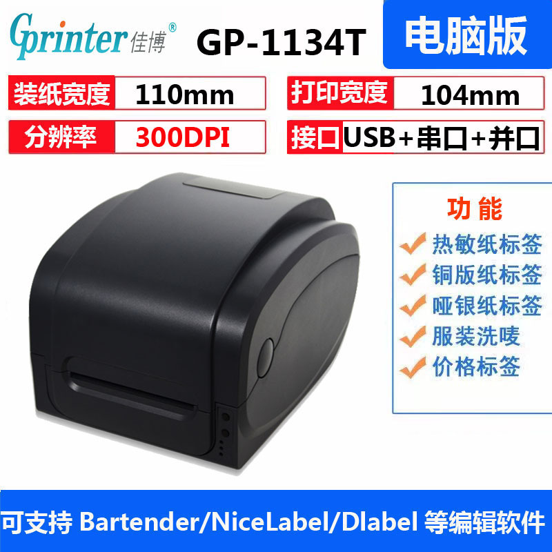 Jiabo GP1134T 열 전송 바코드 기계 300 포인트 HD 이메일 익스프레스 단일 의류 탭 프린터
