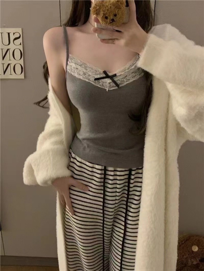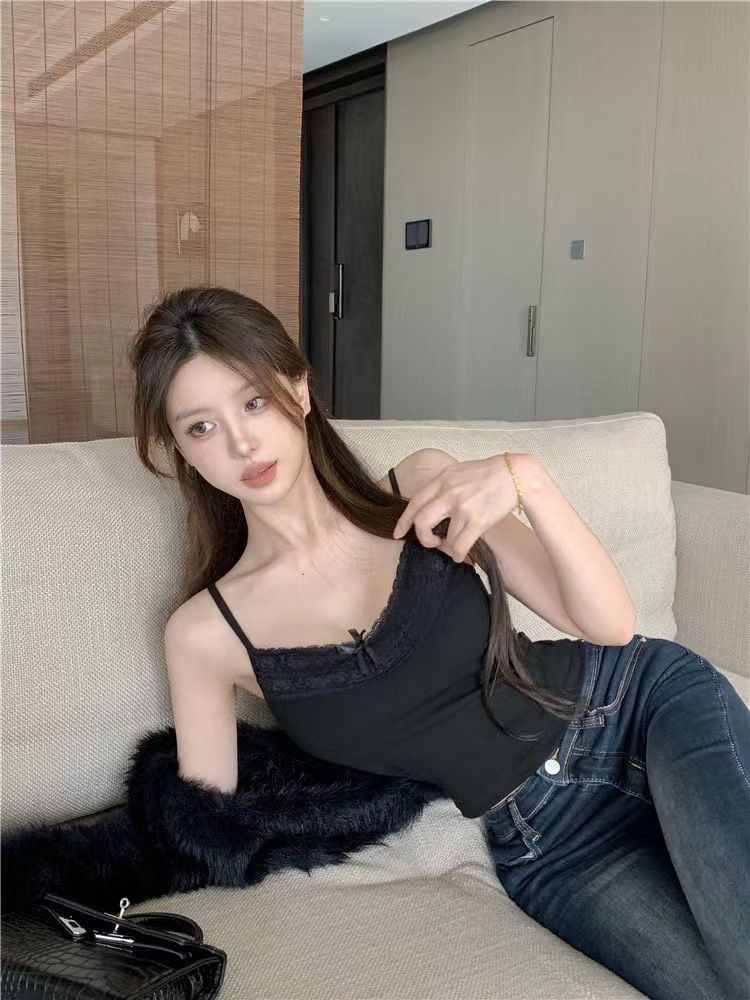 순수한 욕망 레이스 그레이 카미 솔 여성 벨트 가슴 패드 내부 착용 외부 착용 짧은 슬림 핏 디자인 센스 니쉬 여성스토어 가기