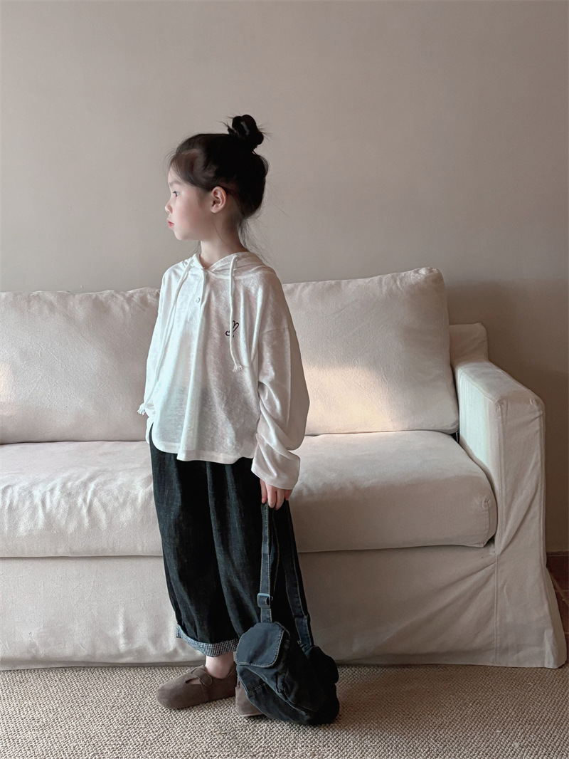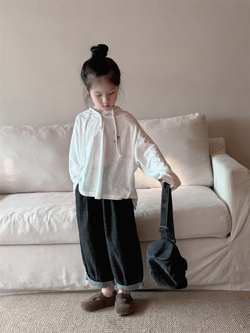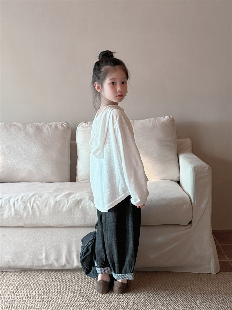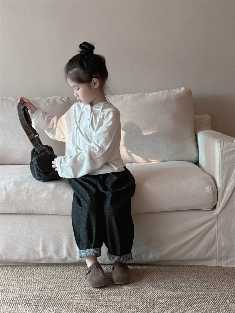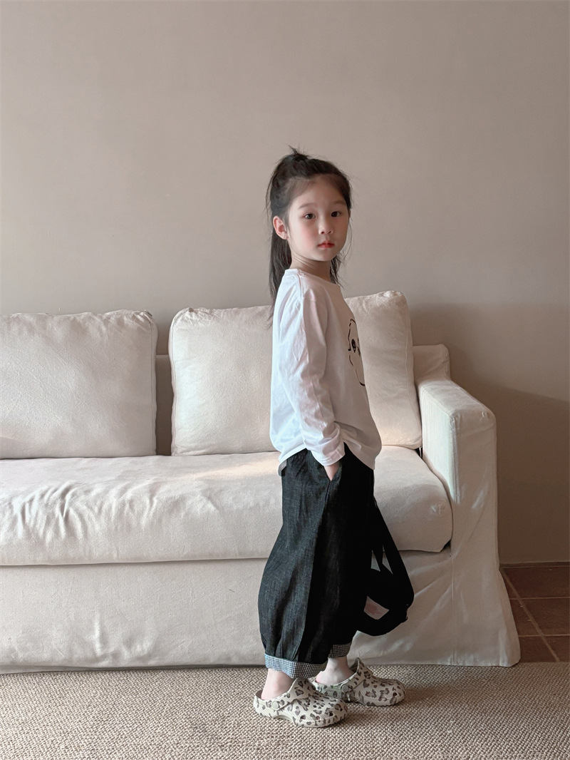 봄과 여름 2024 소년 소녀를위한 어린이 청바지 새로운 서양식 스트레이트 격자 무늬 컬링 바지 아기 바지 K387