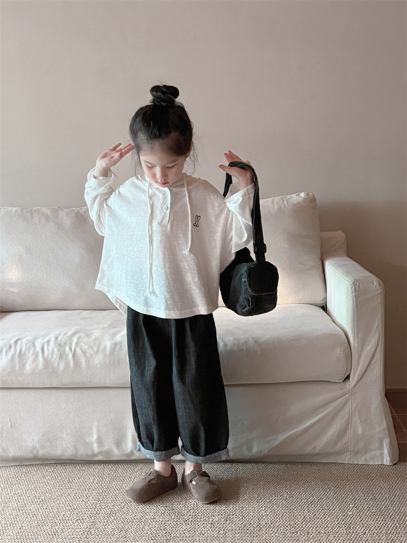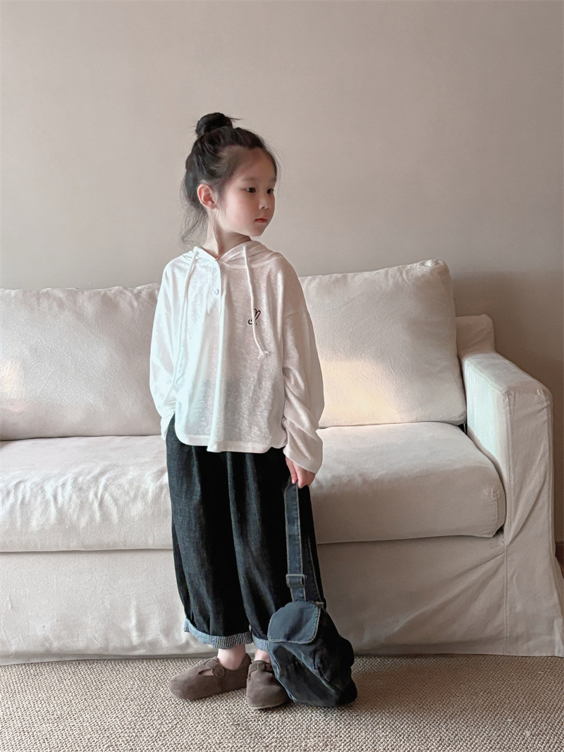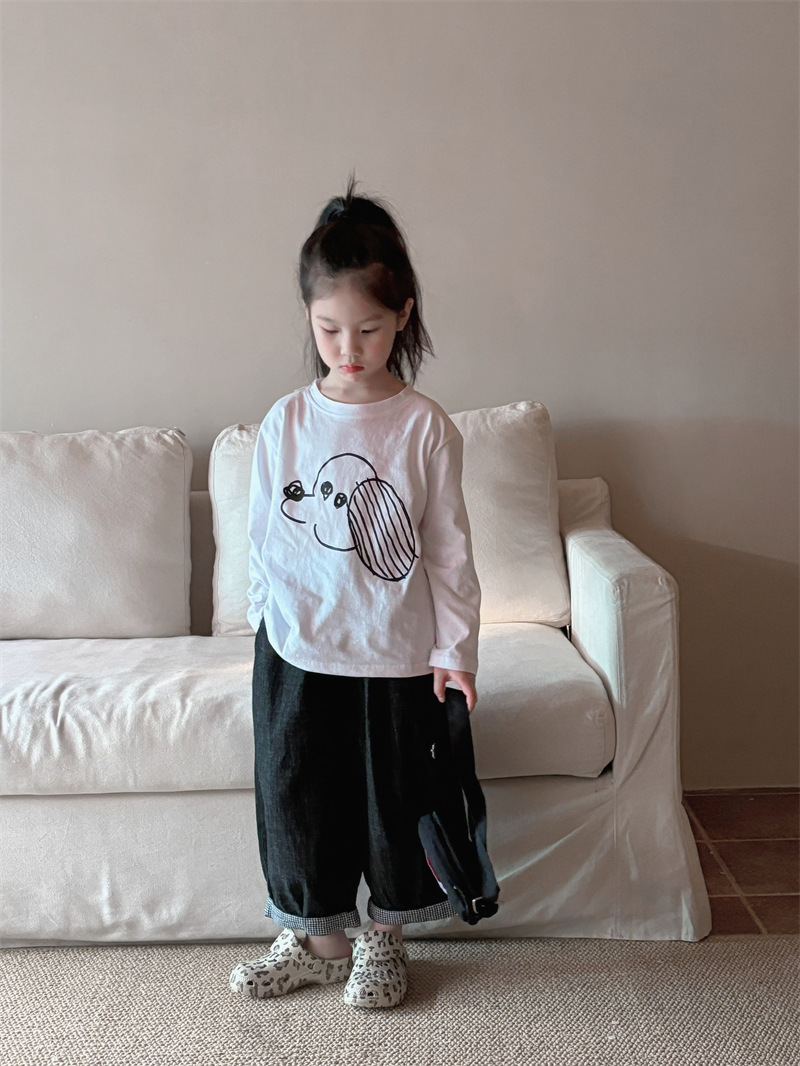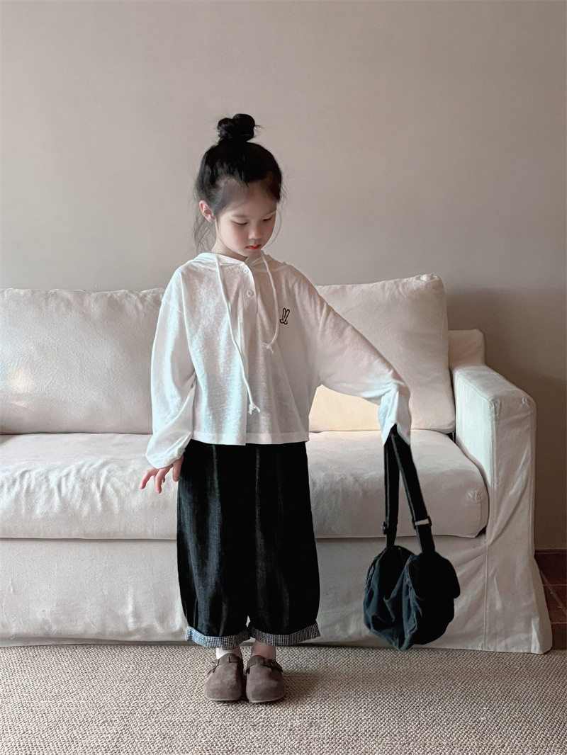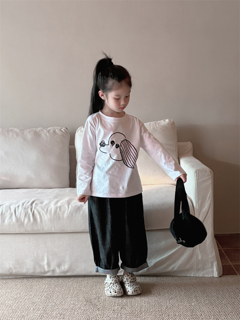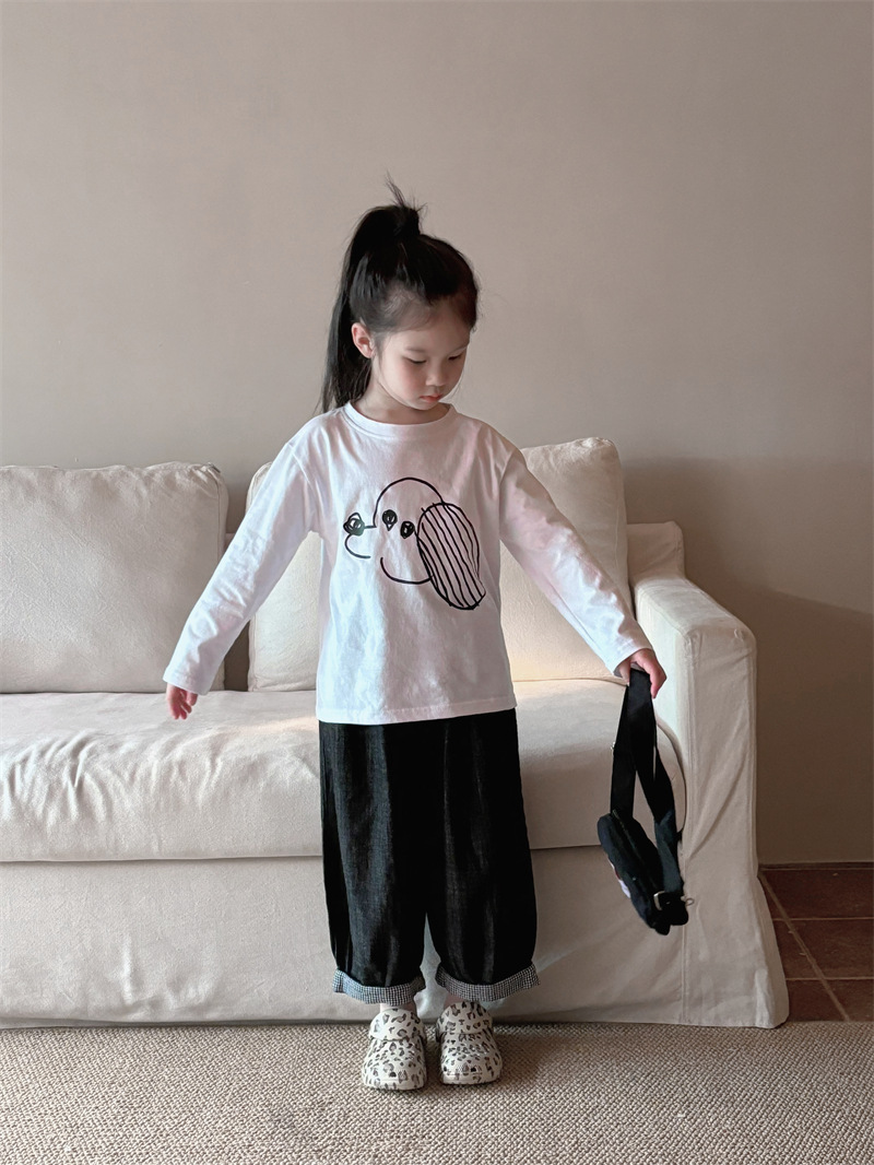 봄과 여름 2024 소년 소녀를위한 어린이 청바지 새로운 서양식 스트레이트 격자 무늬 컬링 바지 아기 바지 K387