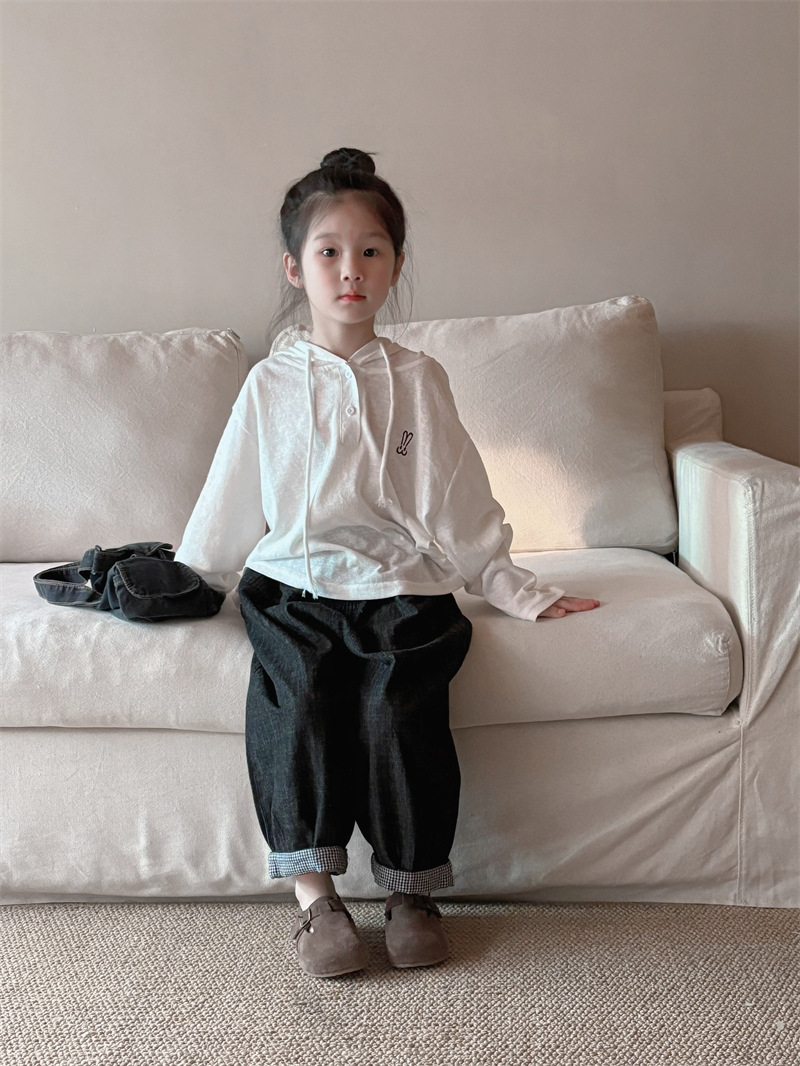 봄과 여름 2024 소년 소녀를위한 어린이 청바지 새로운 서양식 스트레이트 격자 무늬 컬링 바지 아기 바지 K387스토어 가기