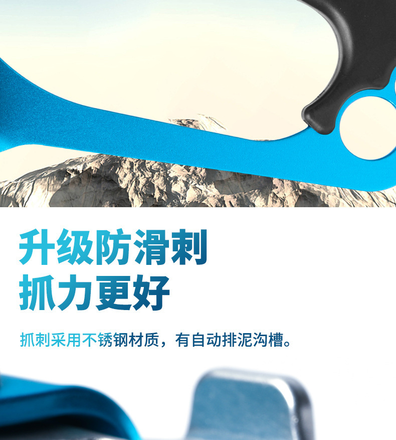 镀铬钢滑轮有倾斜的齿爪及有自动清洁的凹槽,可抓紧湿滑、冰雪或泥泞的绳索