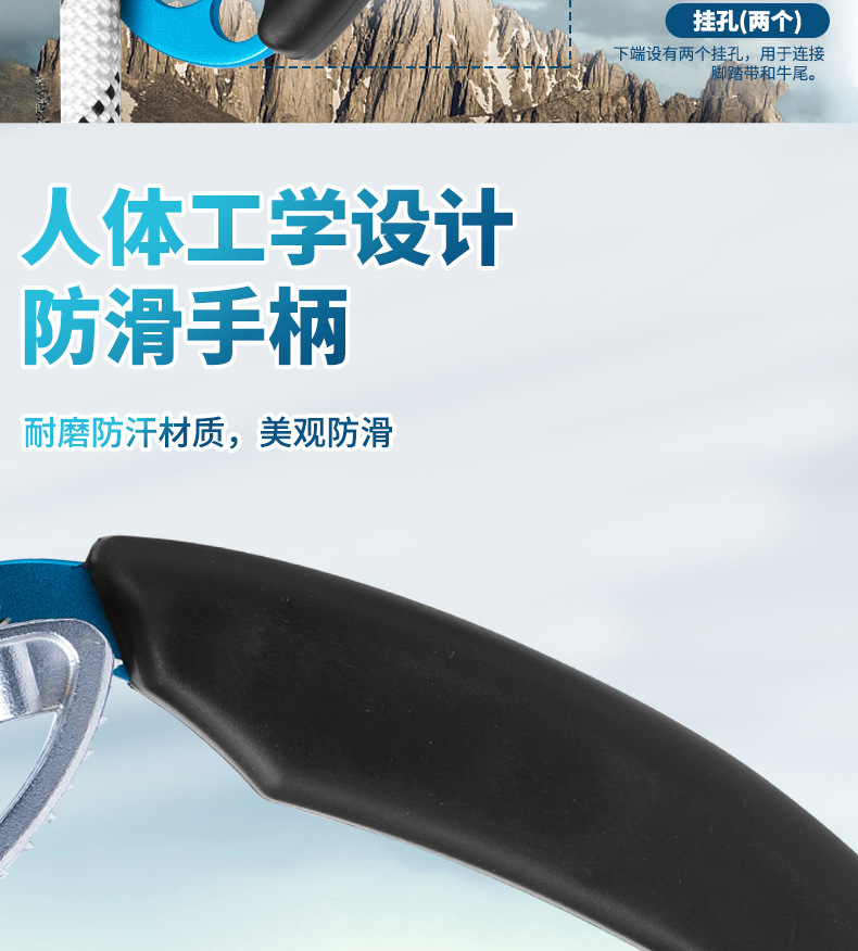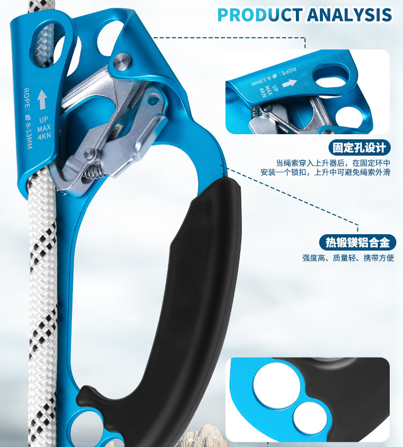 -用单手即可安装于绳上(有人 体工程学的姆指把手),