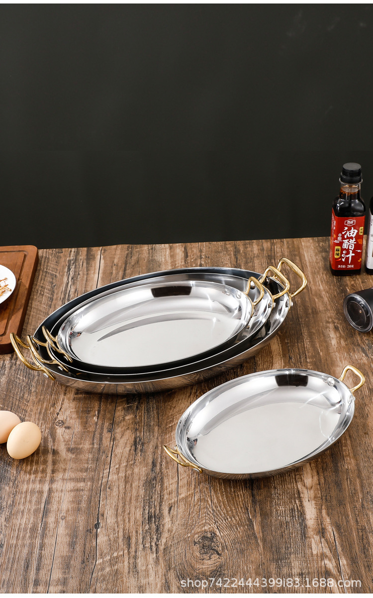 스테인레스 스틸 스페인 스테이크 플레이트 서양 요리 용 새우 플레이트 해산물 플레이트 구운 쌀 플레이트 바이노럴 타원형 상업 두꺼운 플랫스토어 가기