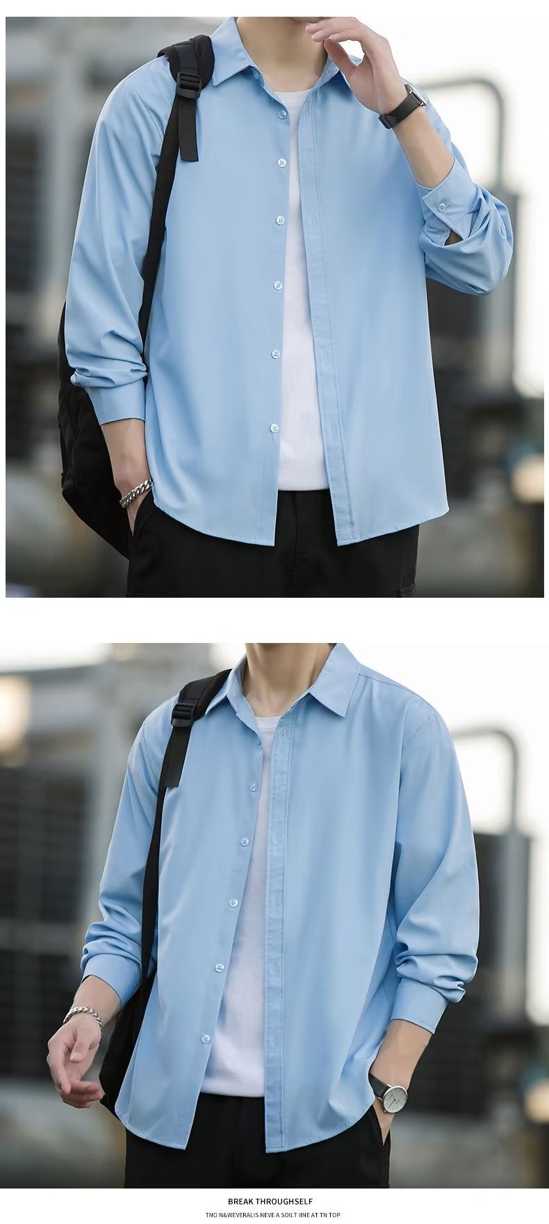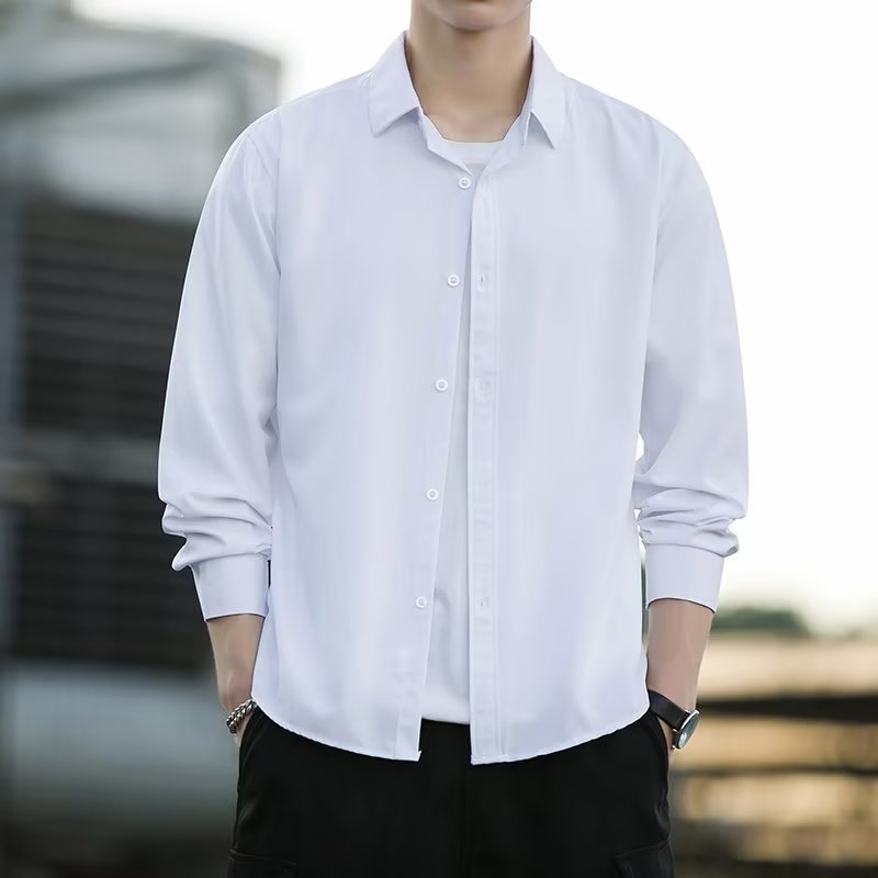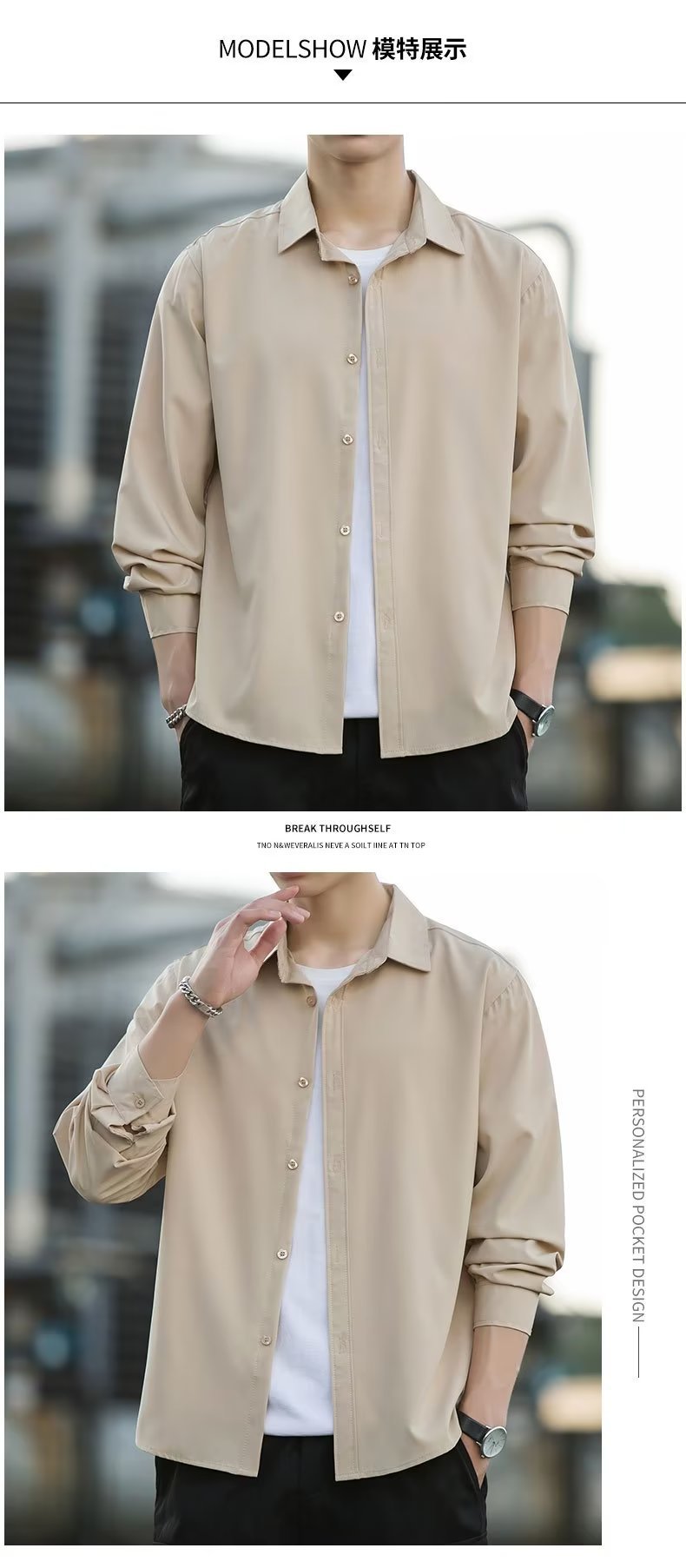 남성용 긴팔 셔츠 봄 가을 청년용 다림질 필요 없는 비즈니스 정장 슬림핏 흰색 셔츠 단색 대형 사이즈 한국 스타일 트렌디스토어 가기