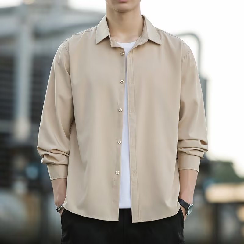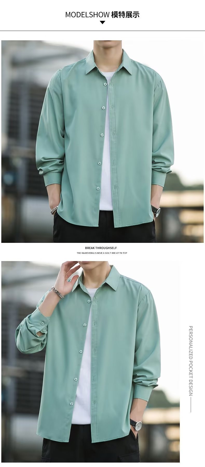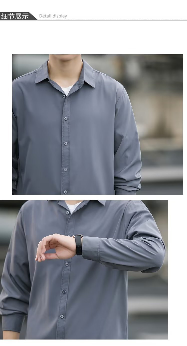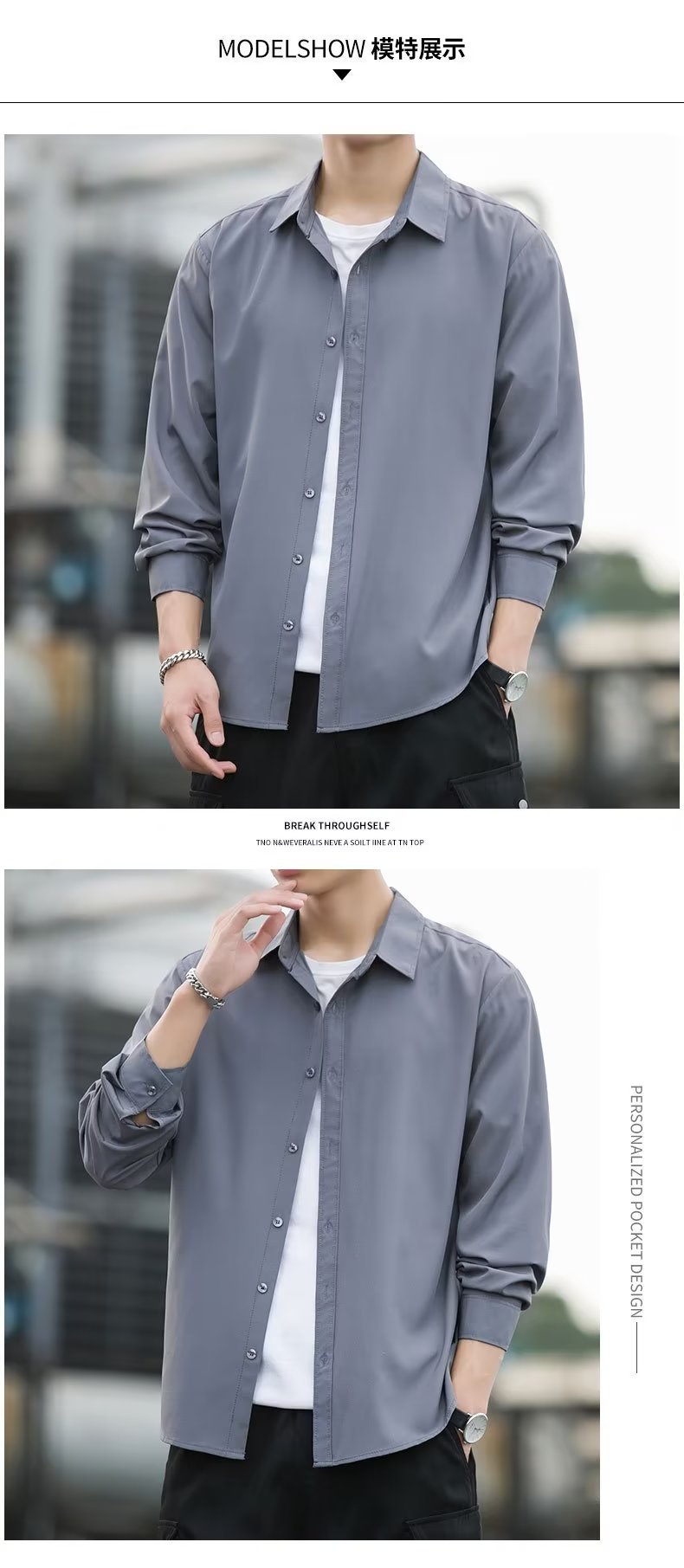 남성용 긴팔 셔츠 봄 가을 청년용 다림질 필요 없는 비즈니스 정장 슬림핏 흰색 셔츠 단색 대형 사이즈 한국 스타일 트렌디스토어 가기