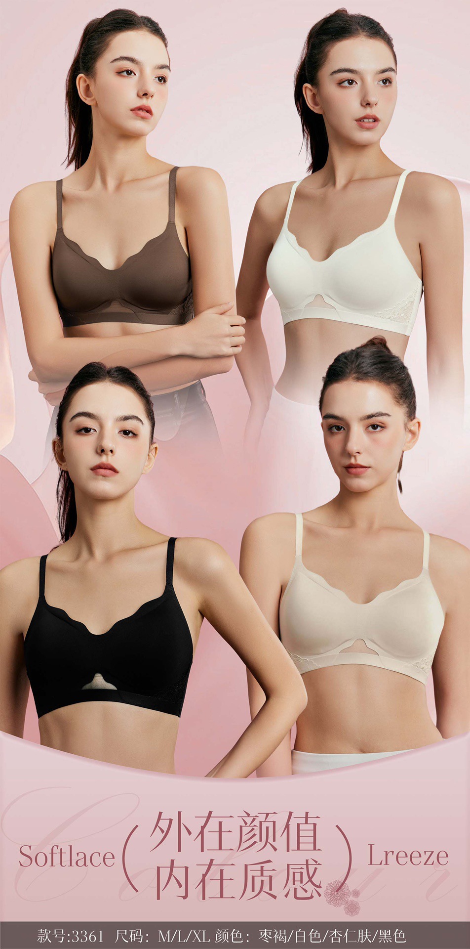 새로운 3361 순수 레이스 웨이브 작은 레이스 여성용 브라 누드 원활한 피부 친화적 인 단색 섹시한 속옷스토어 가기