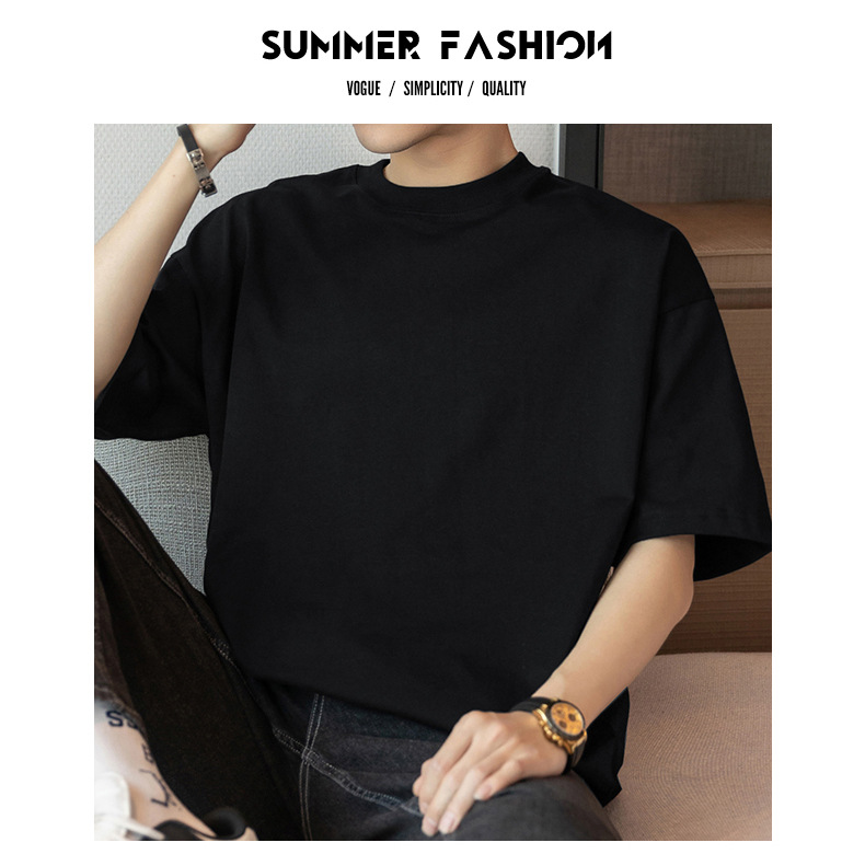 260g 헤비 코튼 티셔츠 남성용 짧은 소매 솔리드 컬러 화이트 탑 의류 미국 티셔츠 면 하프 슬리브 베이스 셔츠스토어 가기