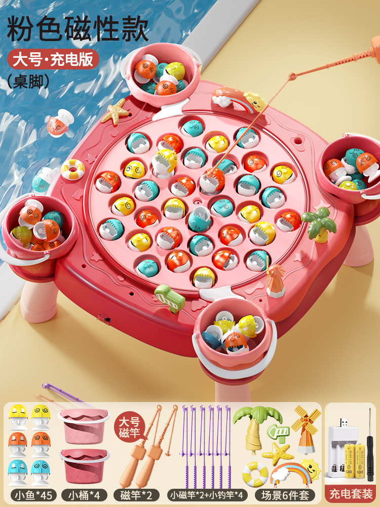 • 핑크 [테이블 다리가있는 럭셔리 대형] {45 이중 목적 물고기 + 8 낚시대 + 4 배럴 + 6 시나리오} 충전 버전