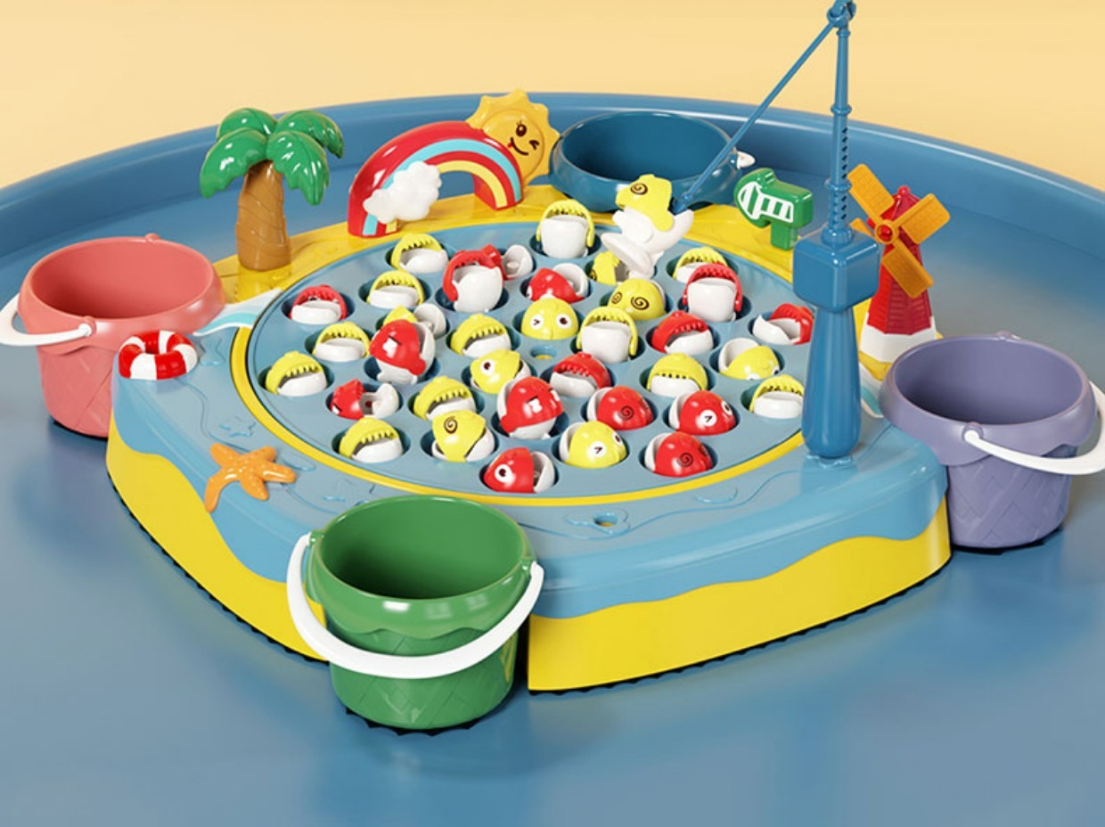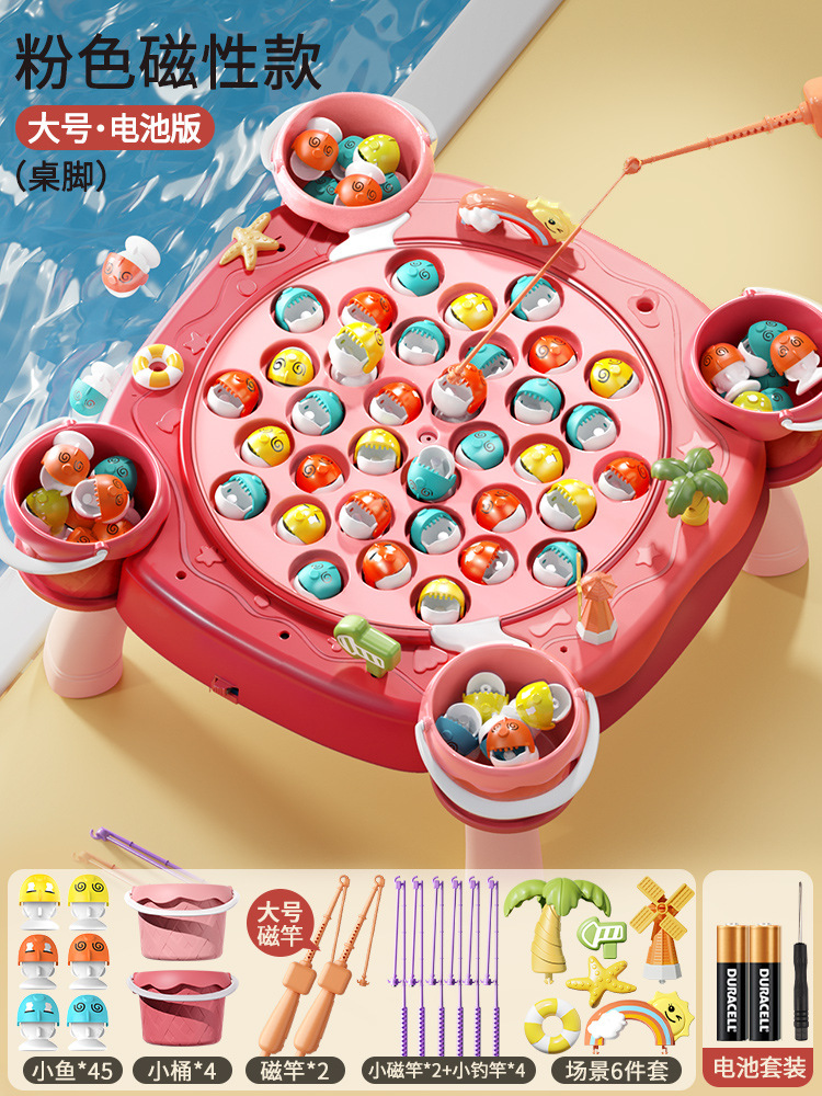 • 핑크 [테이블 다리가있는 중형] {31 이중 목적 물고기 + 8 낚싯대 + 4 배럴 + 4 시나리오} 배터리 버전