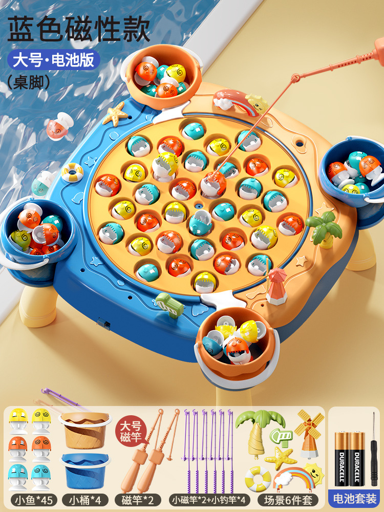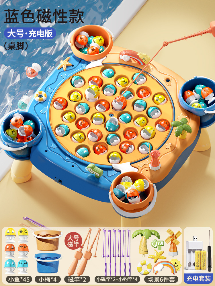 • 블루 [테이블 다리가있는 럭셔리 대형] {45 이중 목적 물고기 + 8 낚시대 + 4 배럴 + 6 시나리오} 배터리 버전