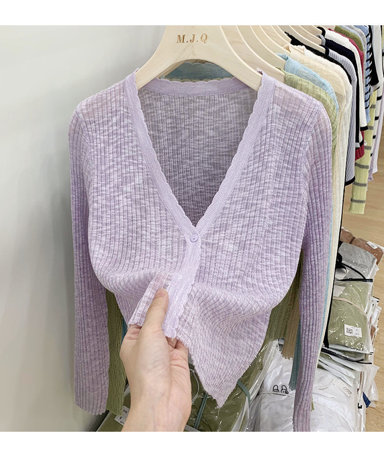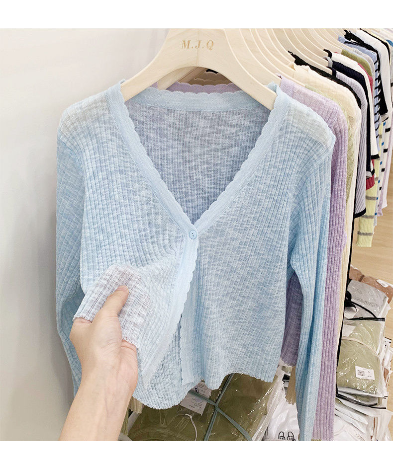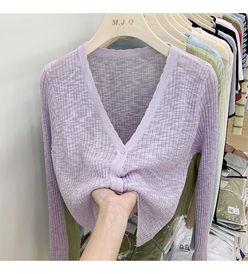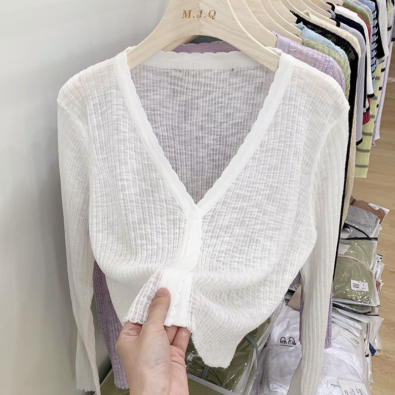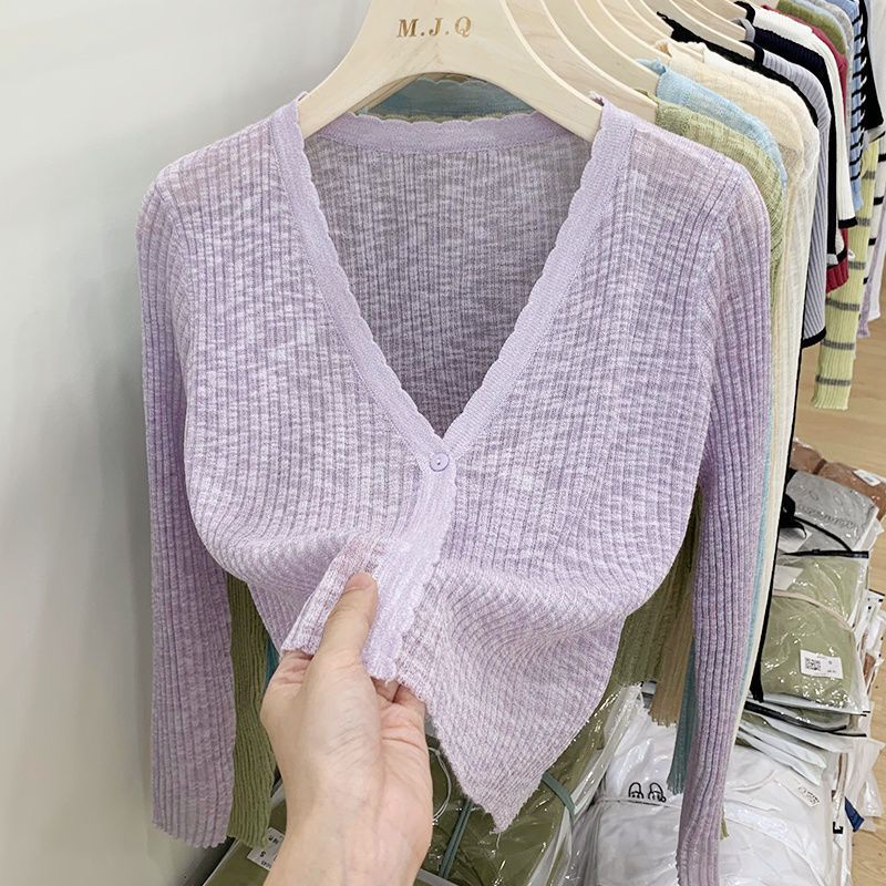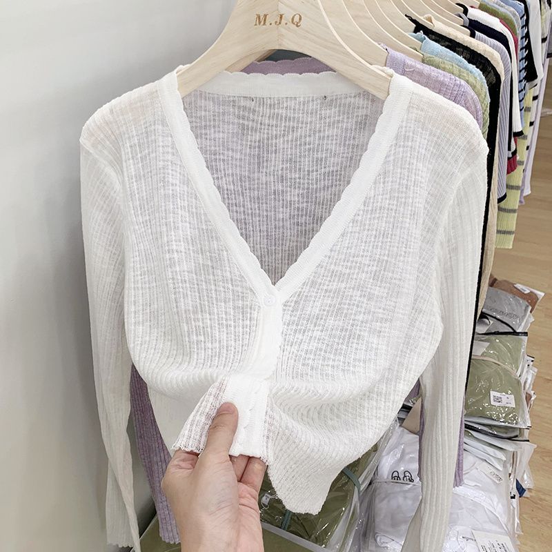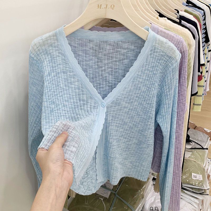 여름 니트 자외선 차단제 카디건 최고 여성 여름 얇은 얼음 실크 카디건 긴 소매 블랙 아우터 착용 짧은 에어컨 셔츠스토어 가기