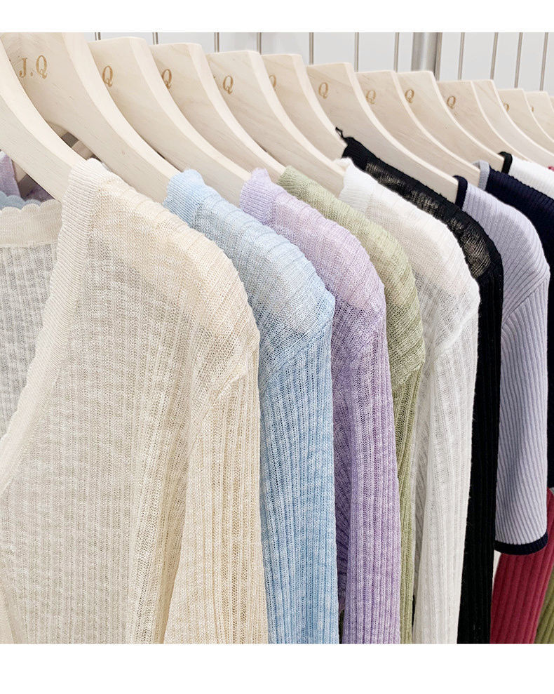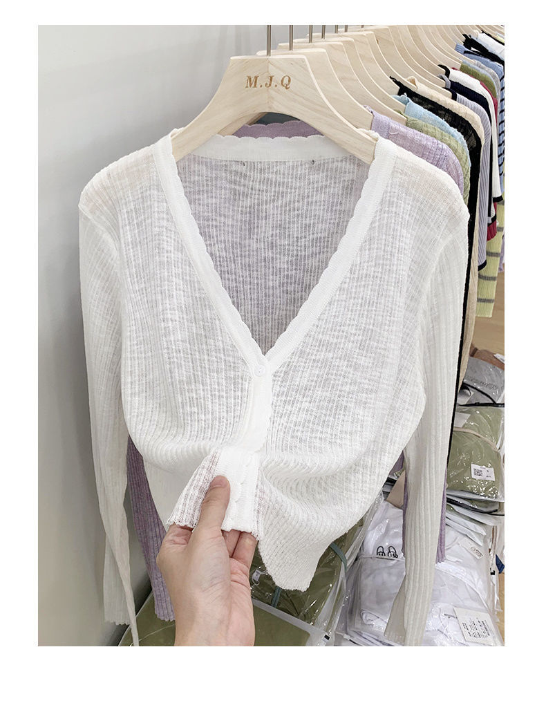 여름 니트 자외선 차단제 카디건 최고 여성 여름 얇은 얼음 실크 카디건 긴 소매 블랙 아우터 착용 짧은 에어컨 셔츠