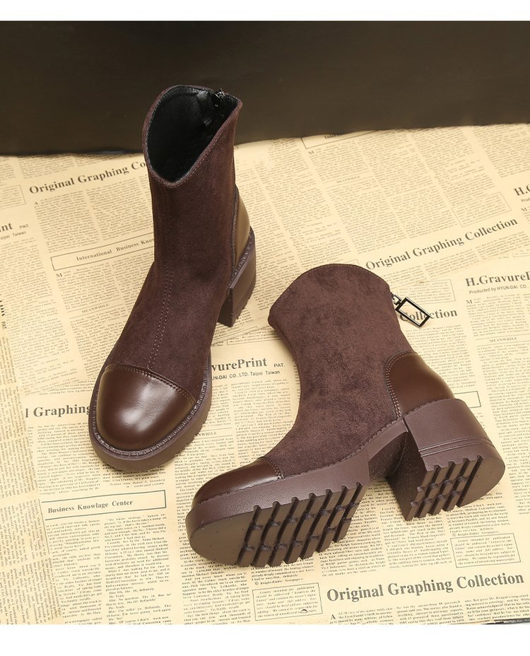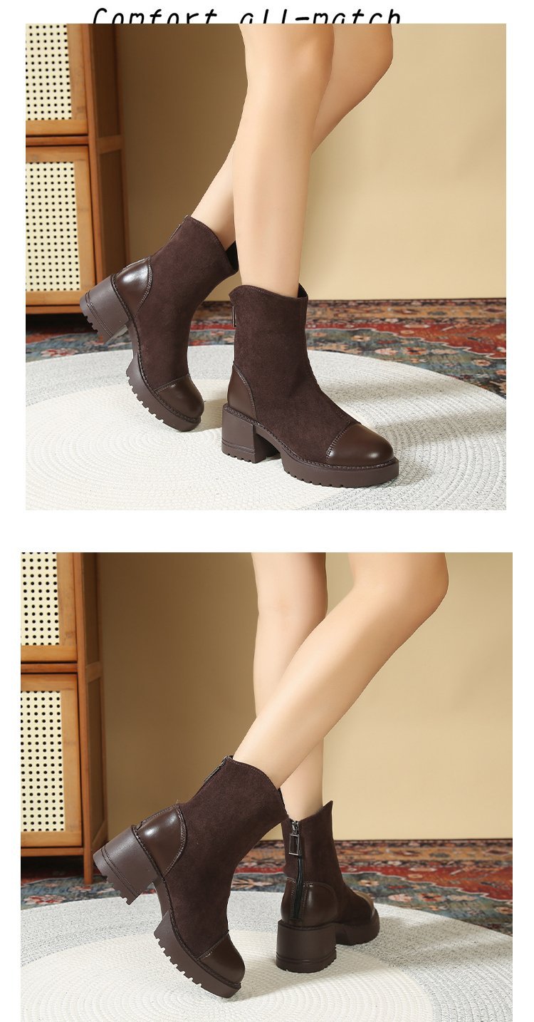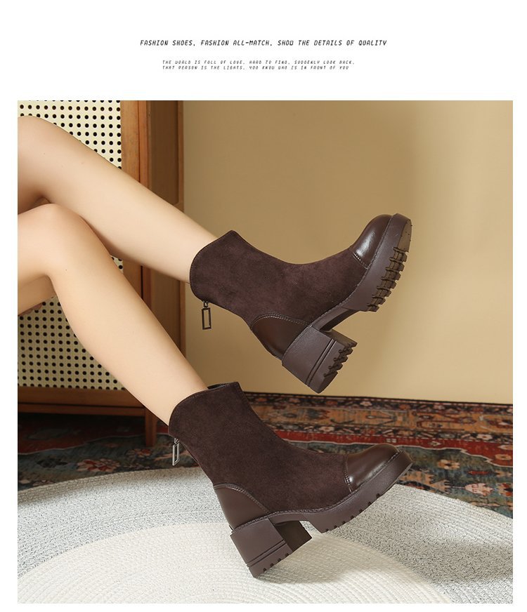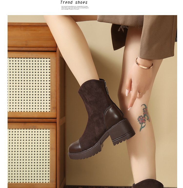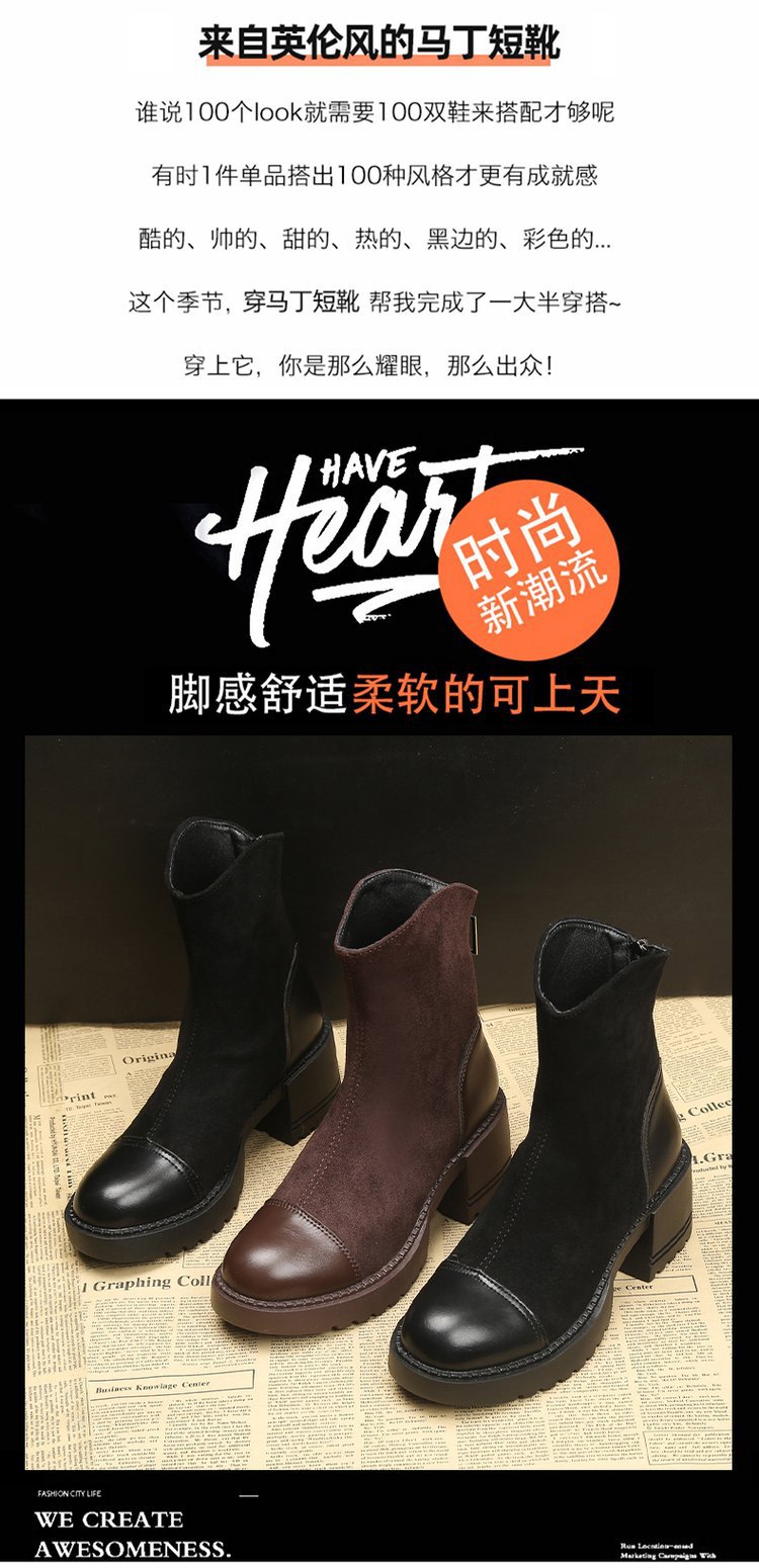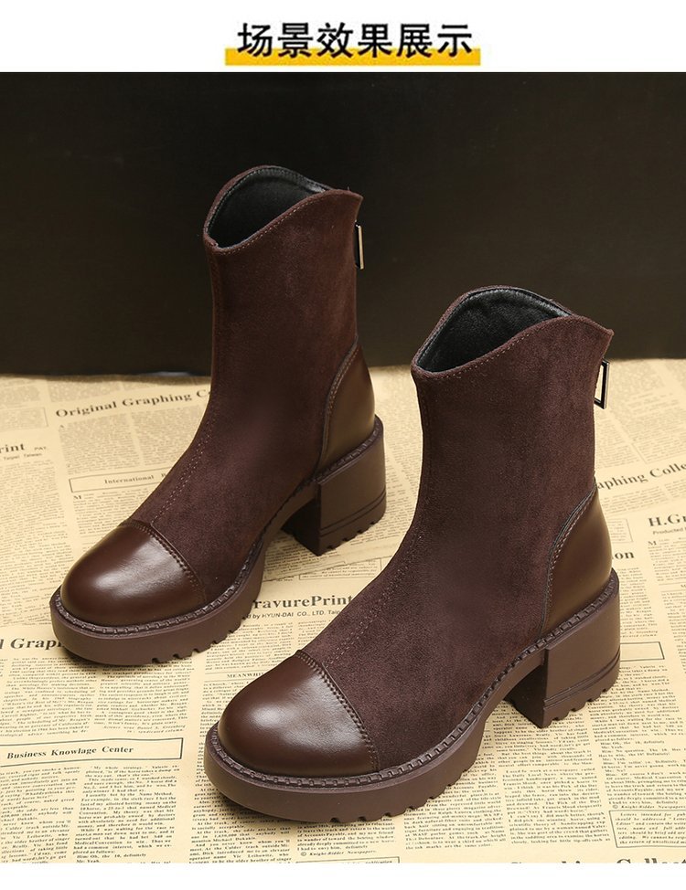 여성의 두꺼운 힐 마틴 부츠 기모 봄과 가을 새로운 싱글 레이어 부츠 두꺼운 바닥 짧은 부츠 여성용 하이힐은 다크 브라운 작습니다.스토어 가기
