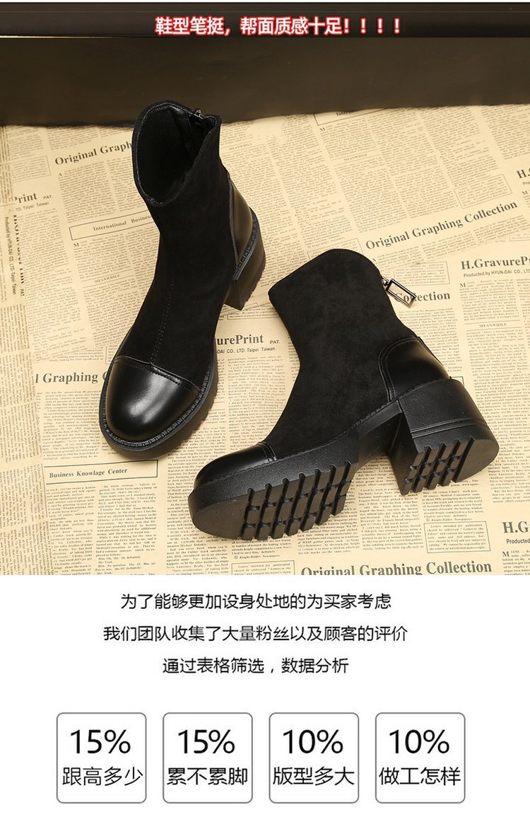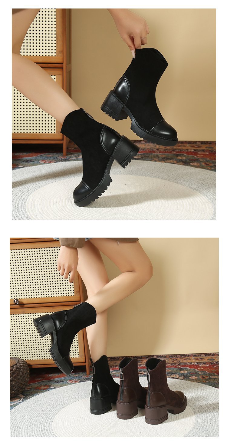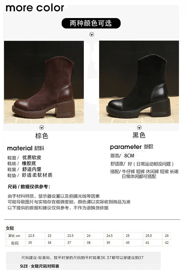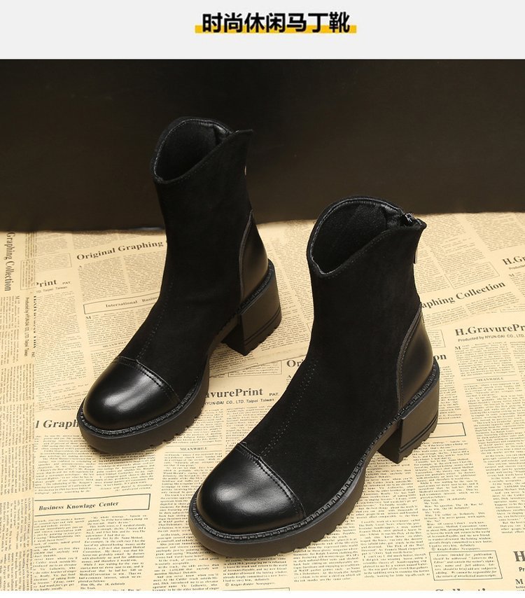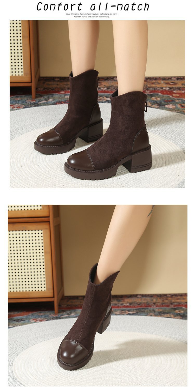 여성의 두꺼운 힐 마틴 부츠 기모 봄과 가을 새로운 싱글 레이어 부츠 두꺼운 바닥 짧은 부츠 여성용 하이힐은 다크 브라운 작습니다.스토어 가기