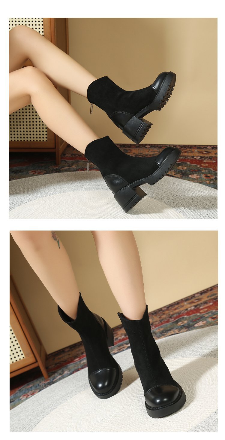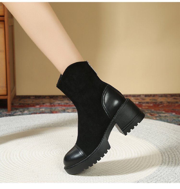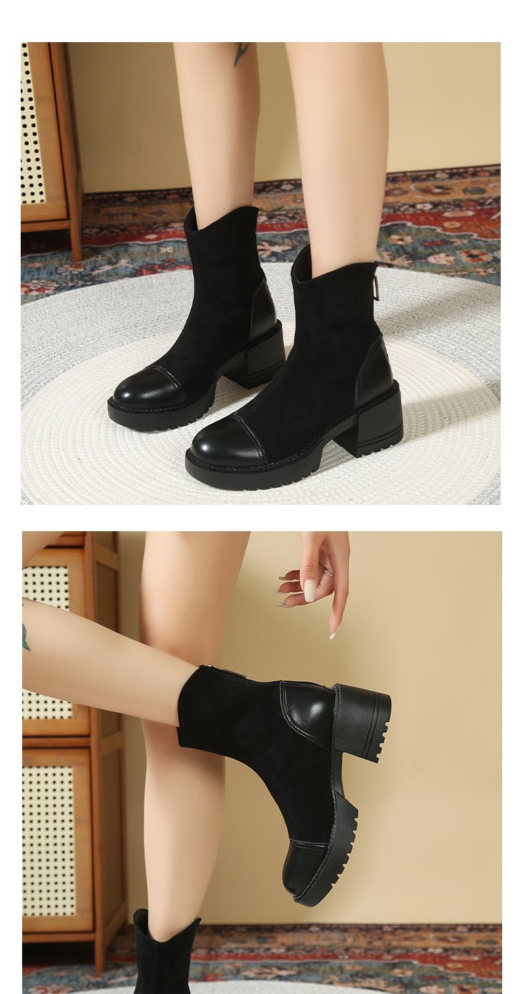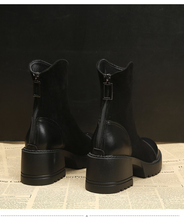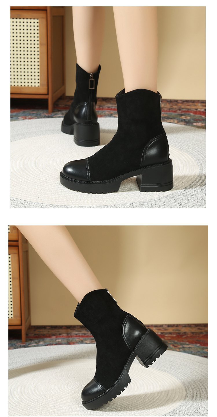 여성의 두꺼운 힐 마틴 부츠 기모 봄과 가을 새로운 싱글 레이어 부츠 두꺼운 바닥 짧은 부츠 여성용 하이힐은 다크 브라운 작습니다.스토어 가기