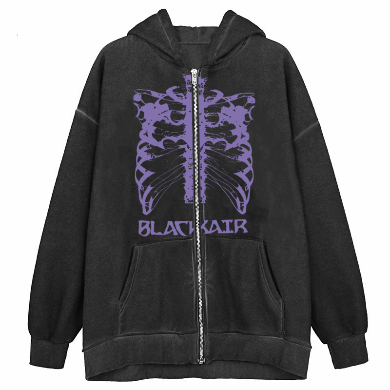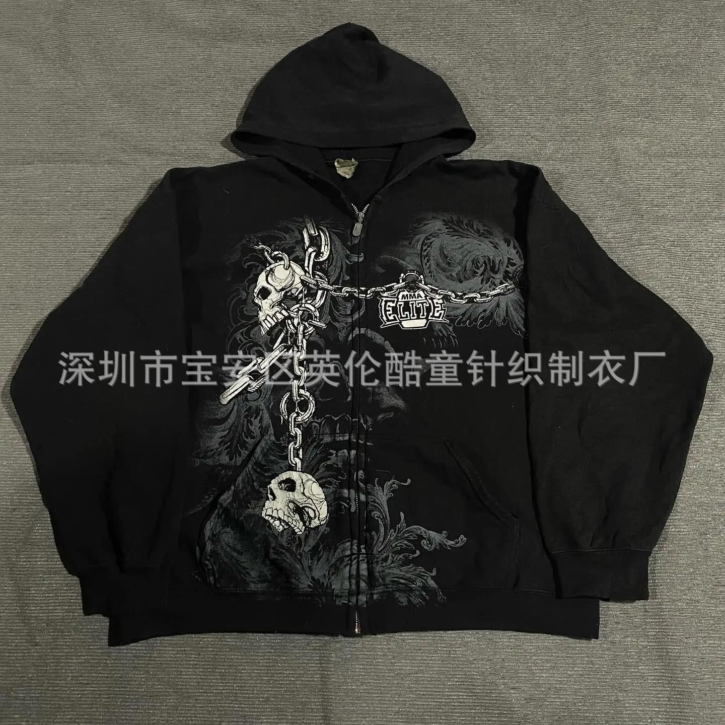 Y2K 해골 지퍼 후디 90 년대 빈티지 패턴 인쇄 지퍼 탑 l 스웨트 셔츠스토어 가기