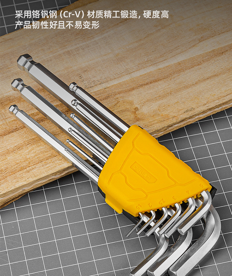 델리 공구 DL3088 연장 볼 헤드 육각 렌치 세트 합금 강철 L 자형 육각 9 피스 세트