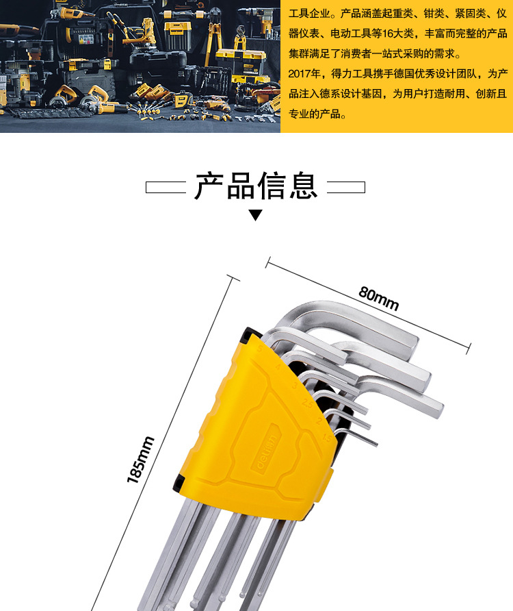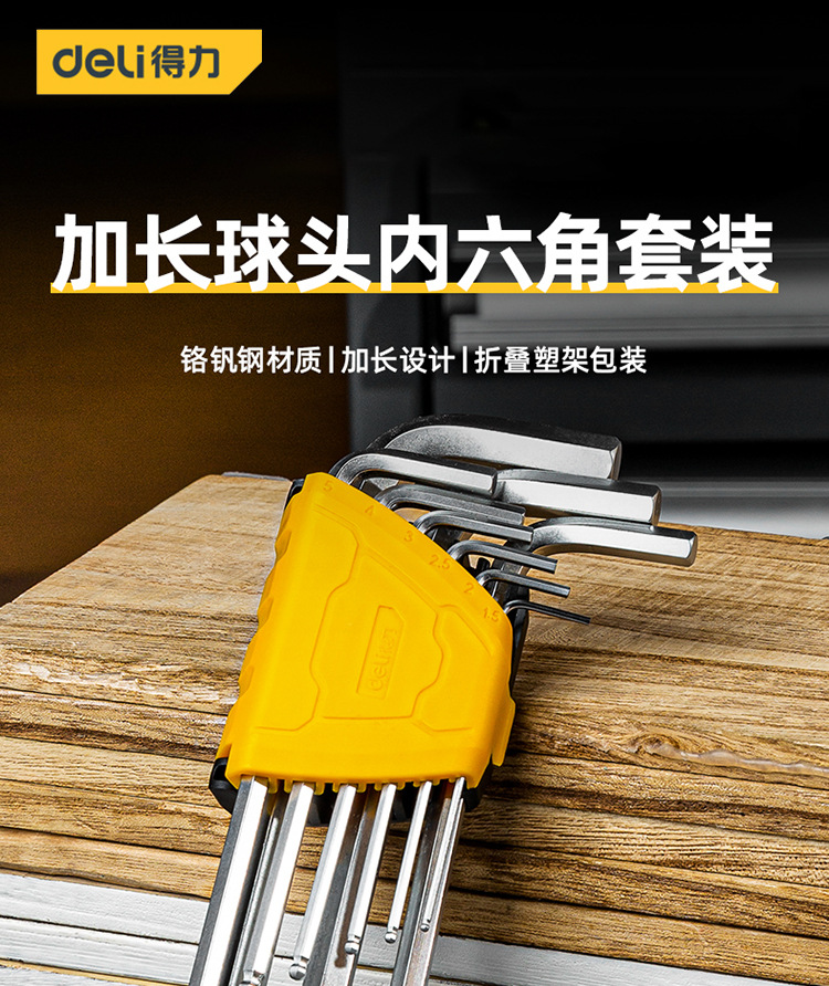 델리 공구 DL3088 연장 볼 헤드 육각 렌치 세트 합금 강철 L 자형 육각 9 피스 세트스토어 가기